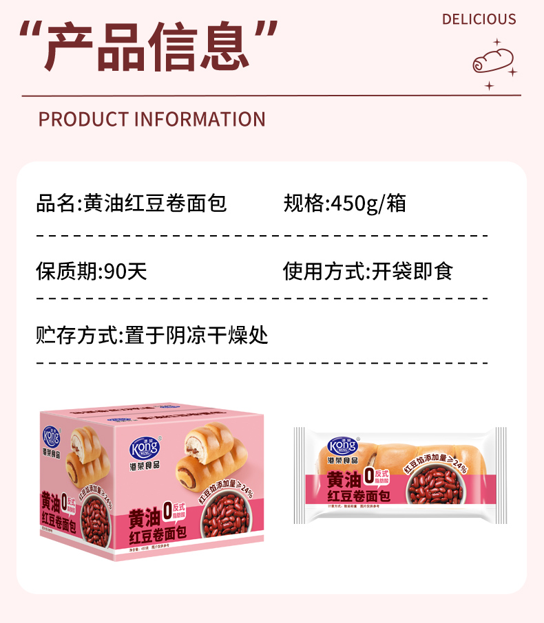 【买一送一】港荣黄油红豆卷 450g 红豆夹心 黄油添加量≥2% 现货现发 日期新鲜 港荣 面包 店铺