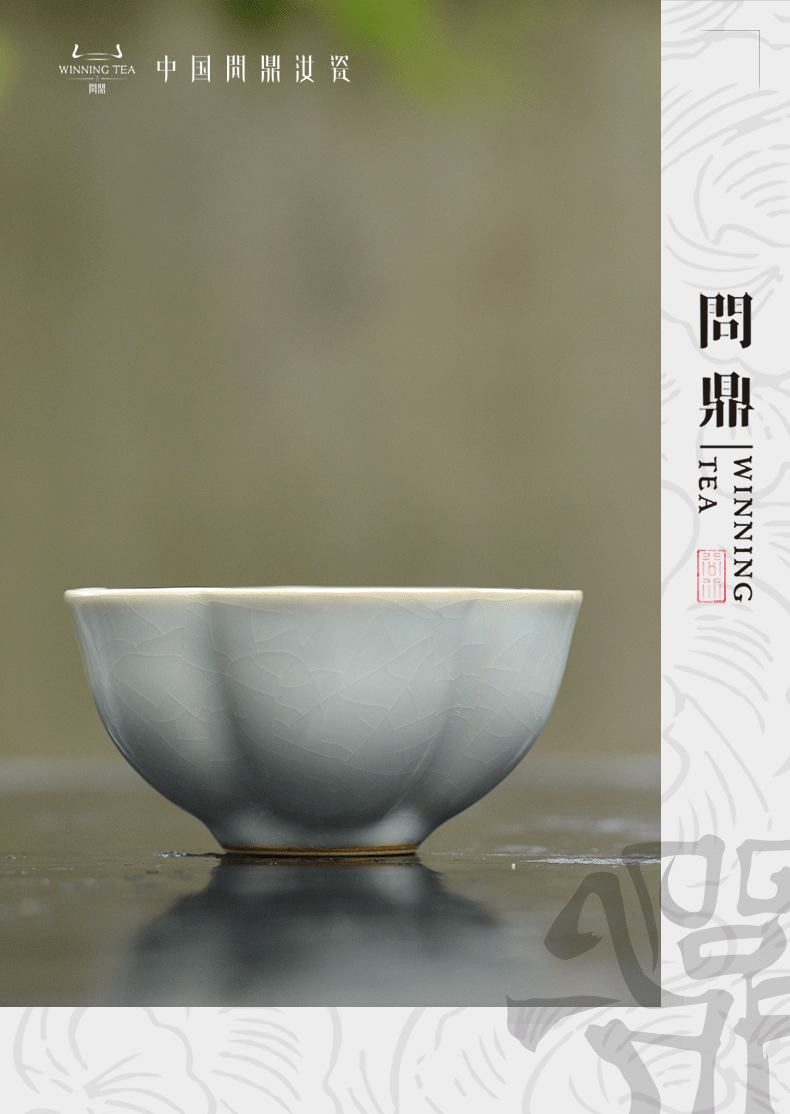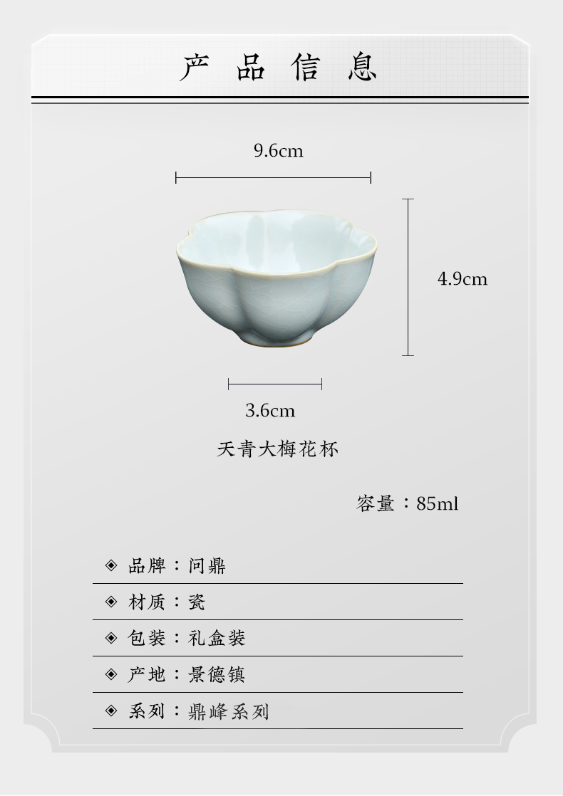问鼎汝瓷鼎峰系列天青老款大梅花杯