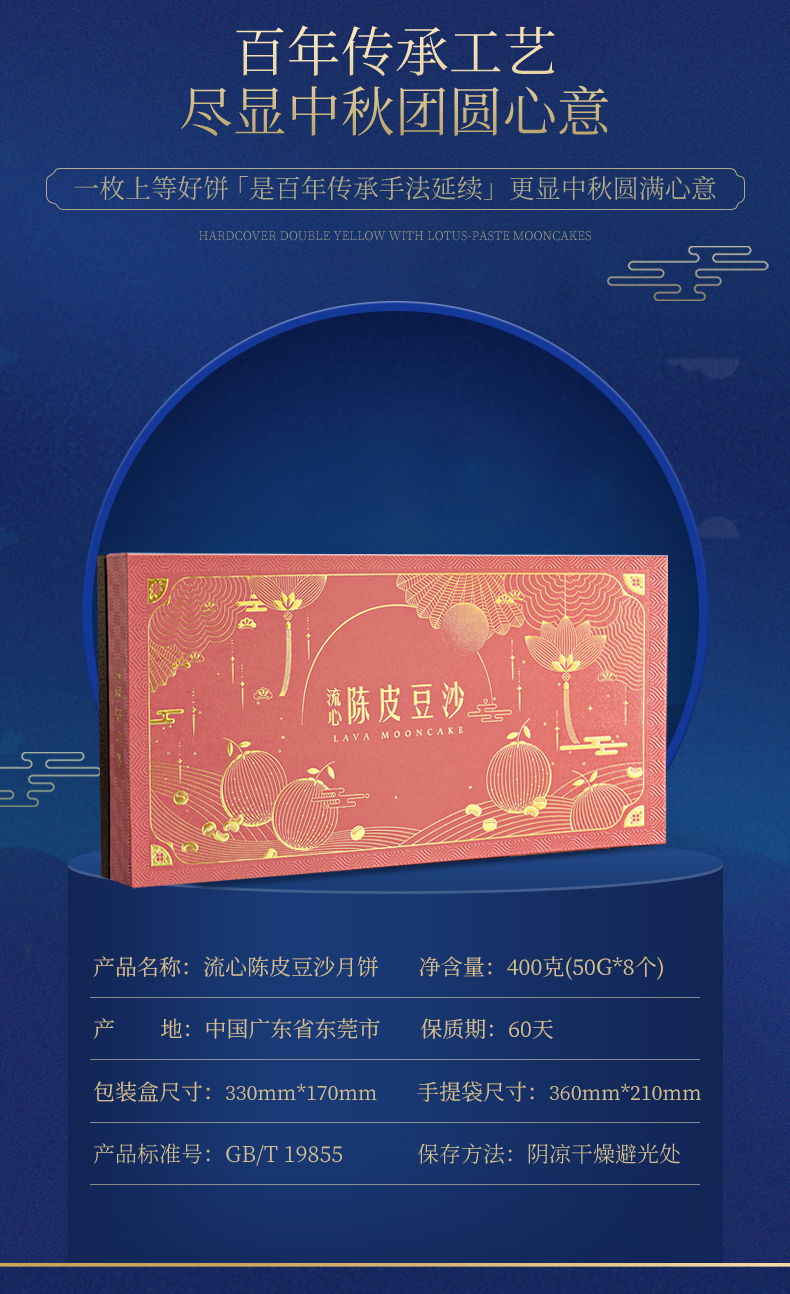 趣香园流心陈皮豆沙月饼8个装(400g)港式月饼顺丰包邮