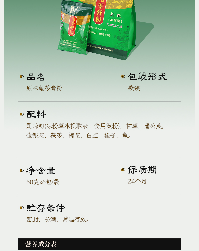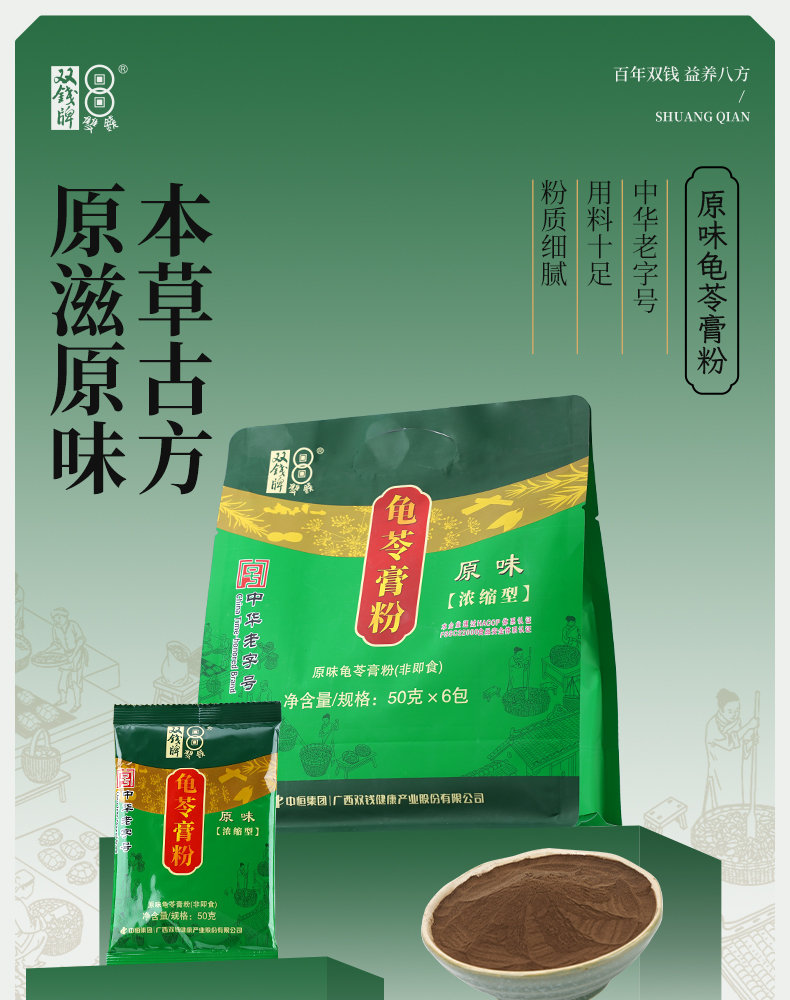 广西梧州双钱龟苓膏粉 原味浓缩型袋装300g/袋 50g* 6小包 中华老字号特产家用自制非仙草凉粉