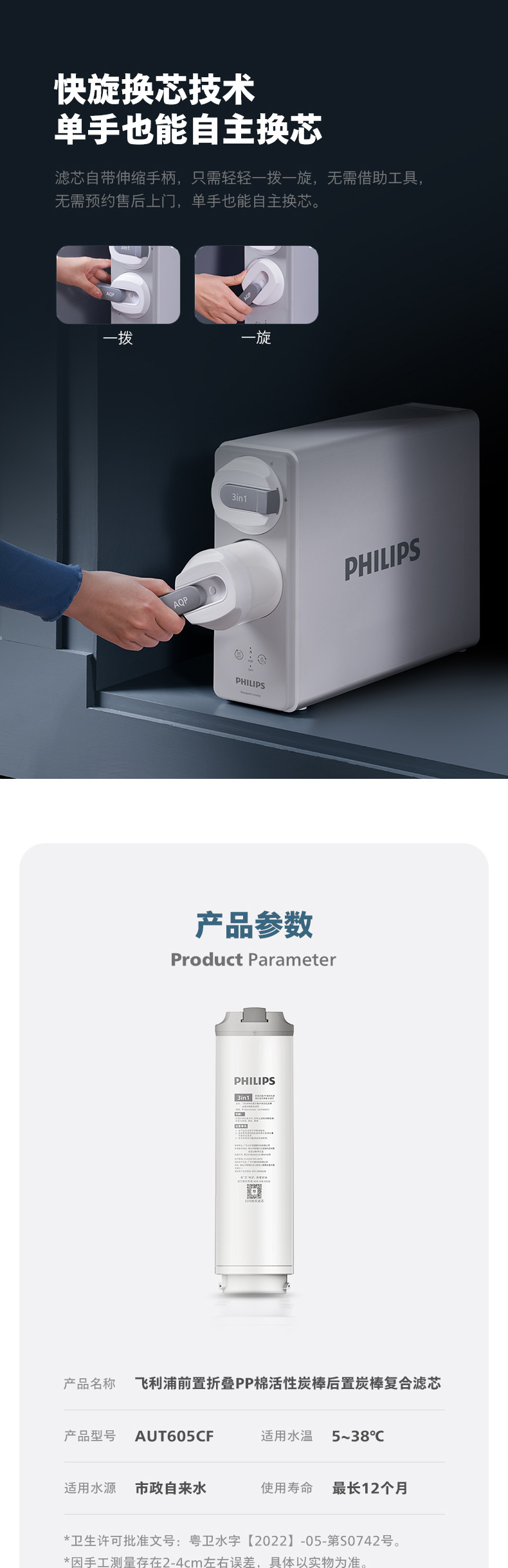 飞利浦(PHILIPS)厨下净水器滤芯AUT605CF 适用:AUT4023R800