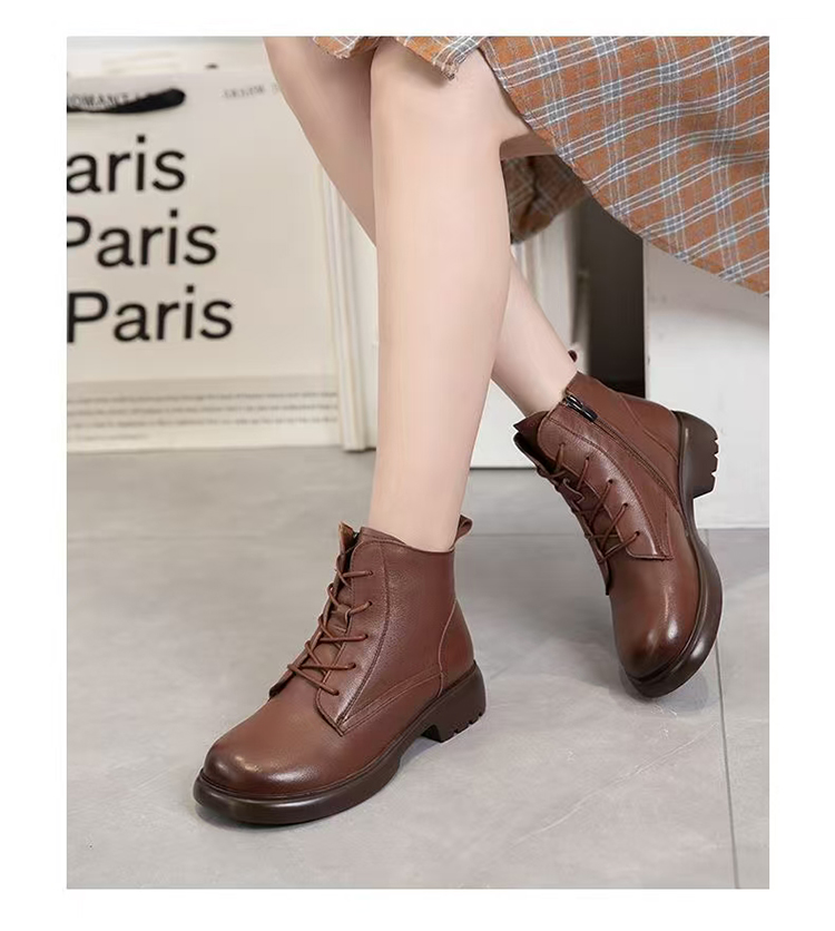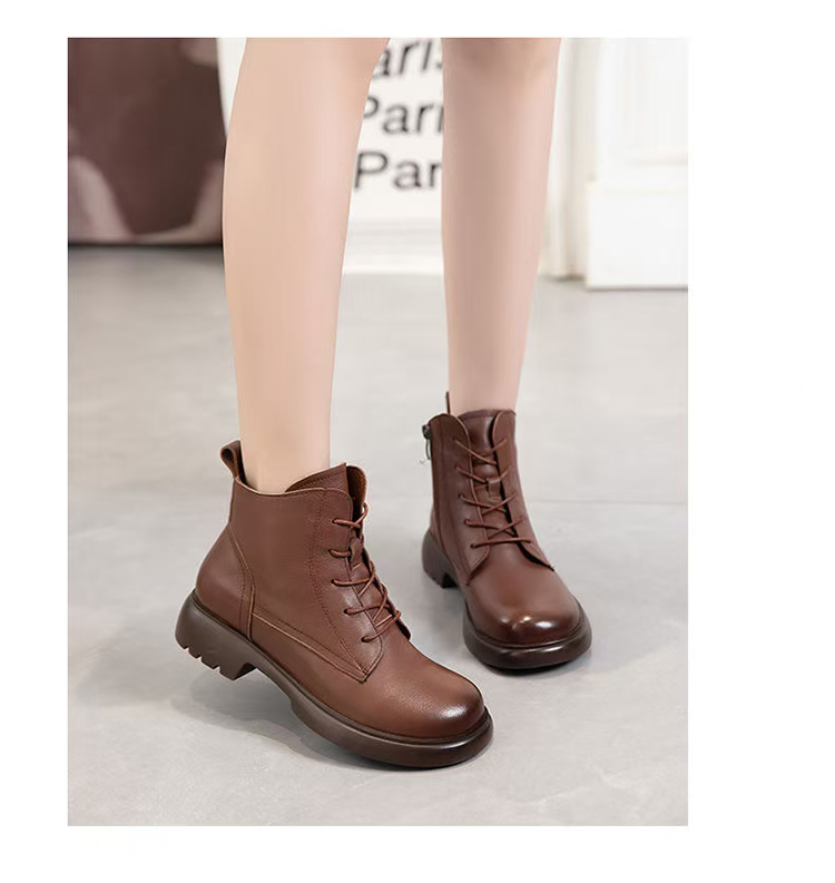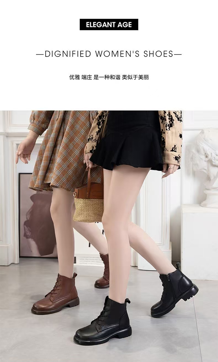【复古圆头马丁靴】加绒保暖棉皮鞋 加厚系带女款皮靴子