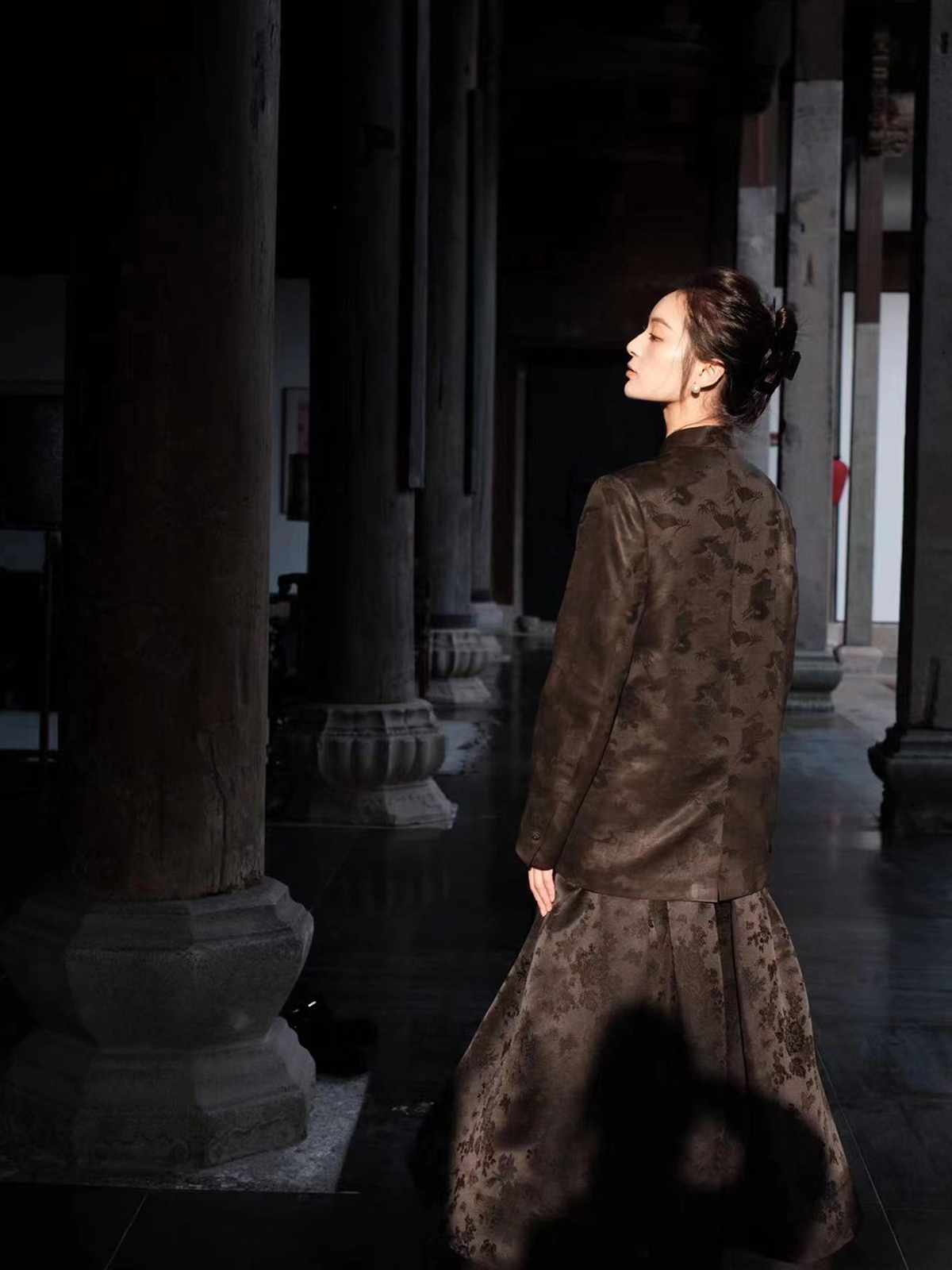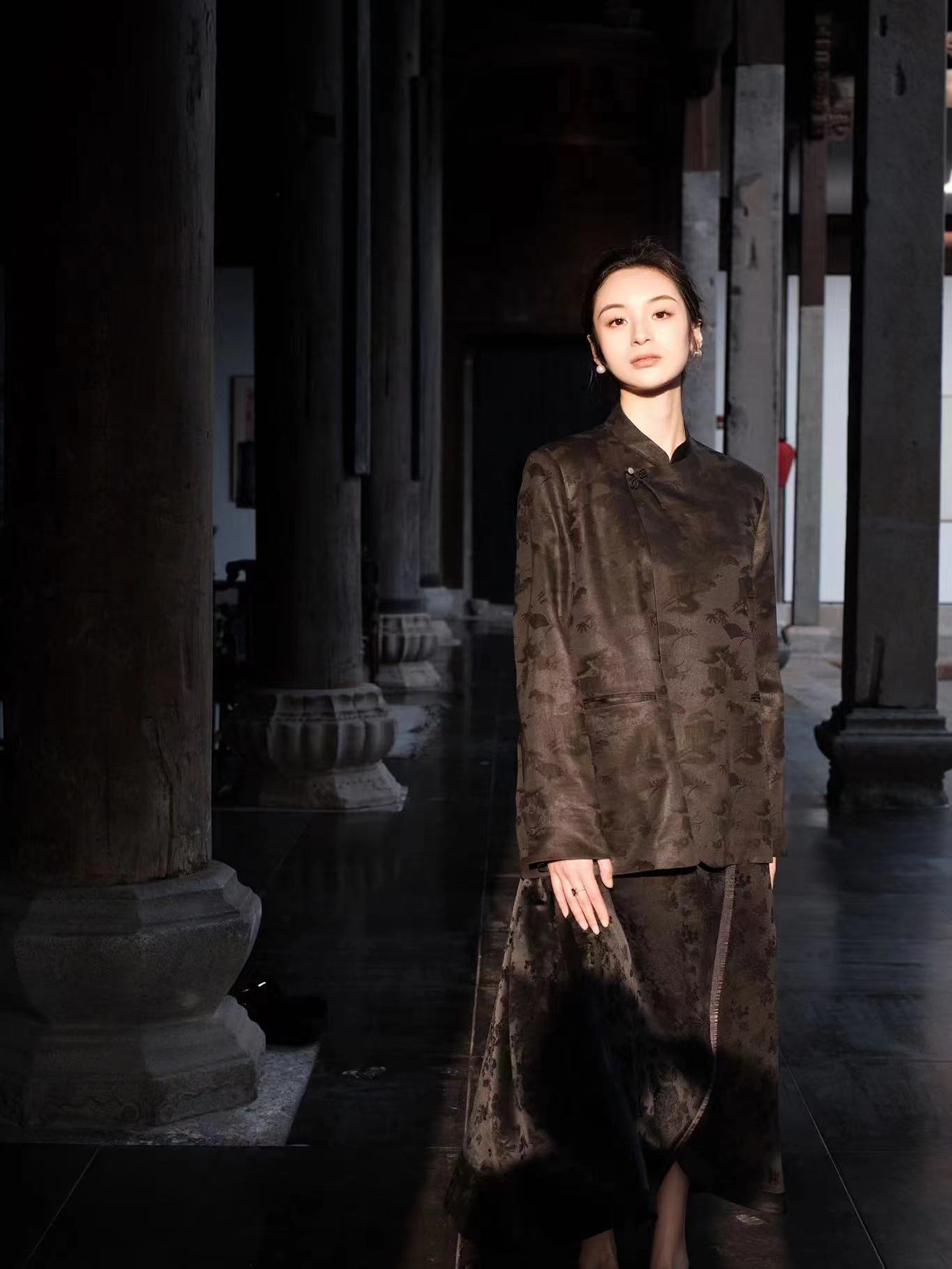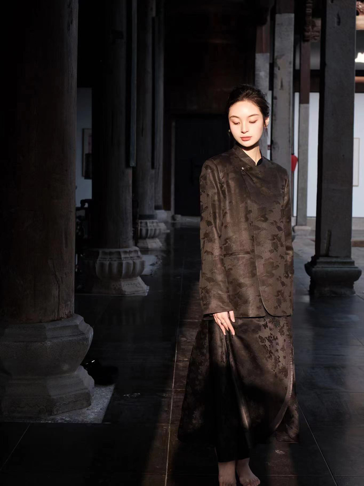 盛唐牡丹 |勃艮第红冠乐绉斜襟上衣