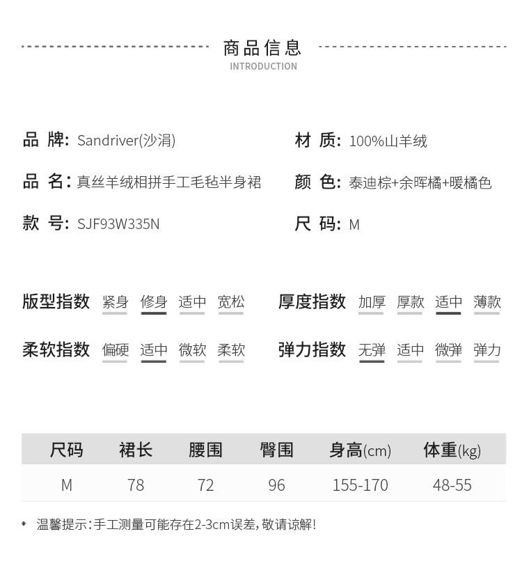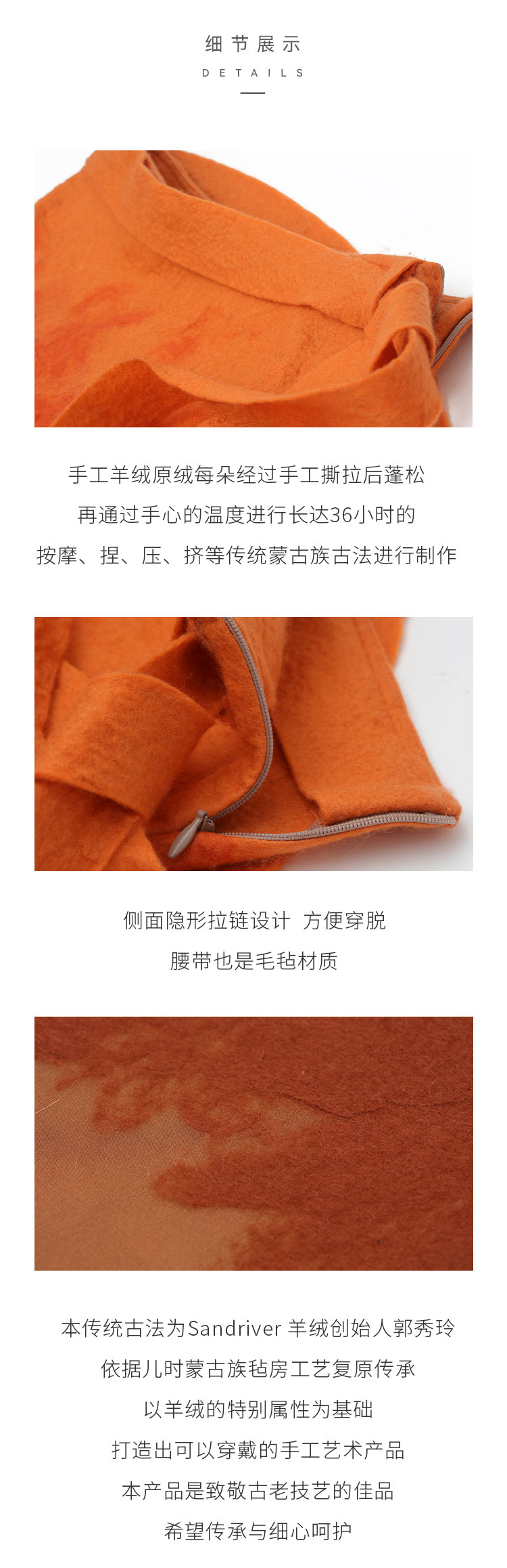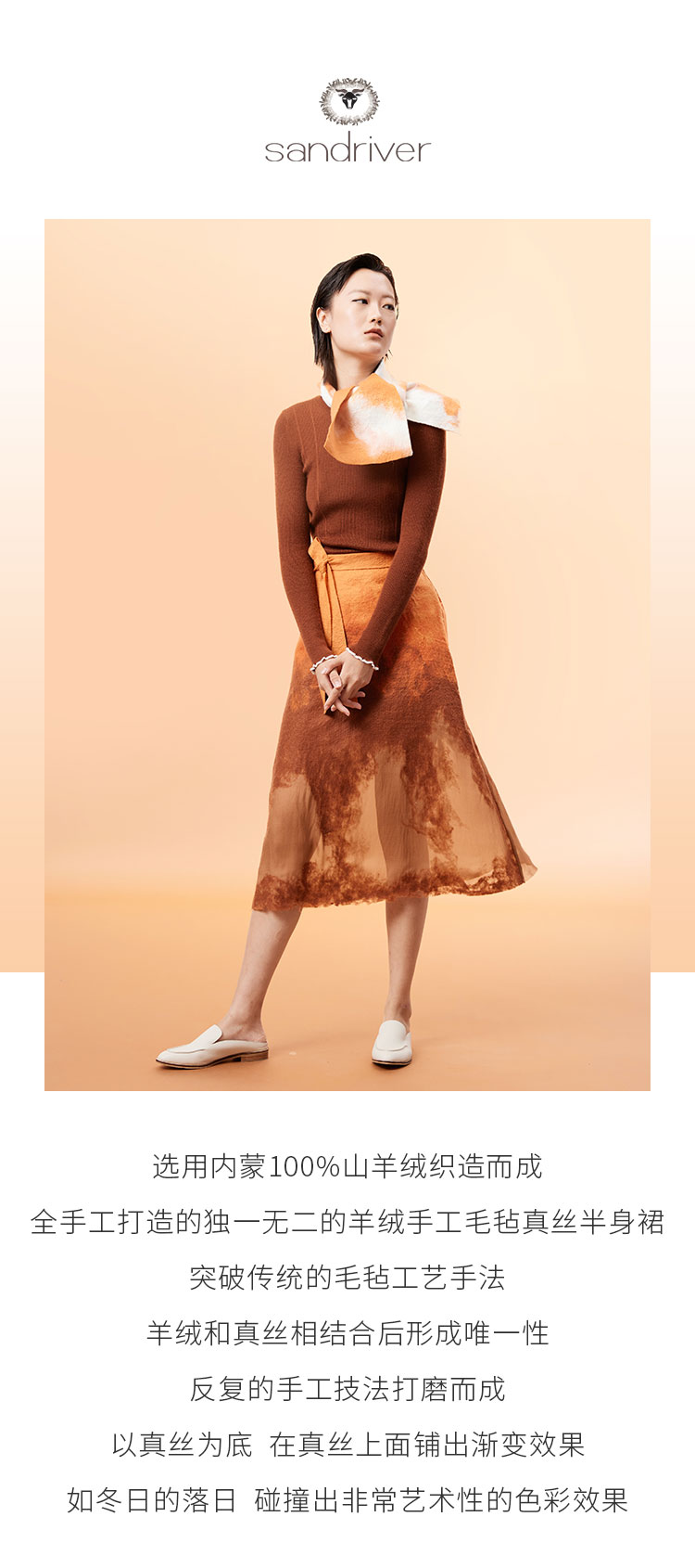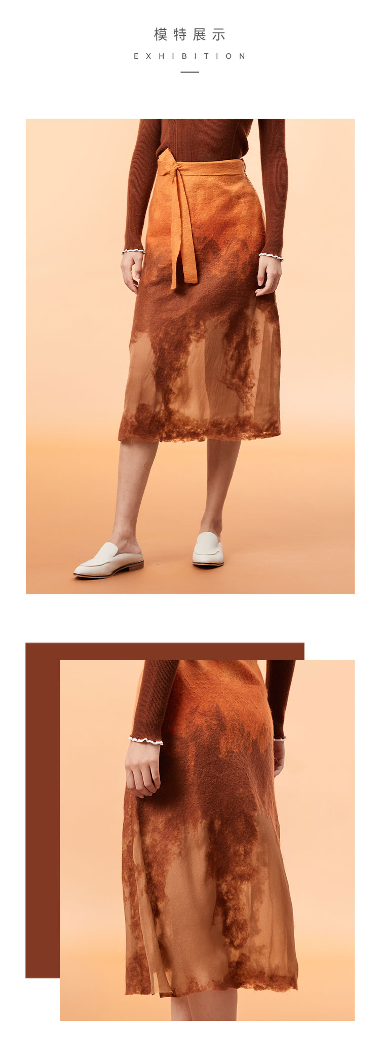 真丝羊绒相拼手工毛毡半身裙 SJF93W335N