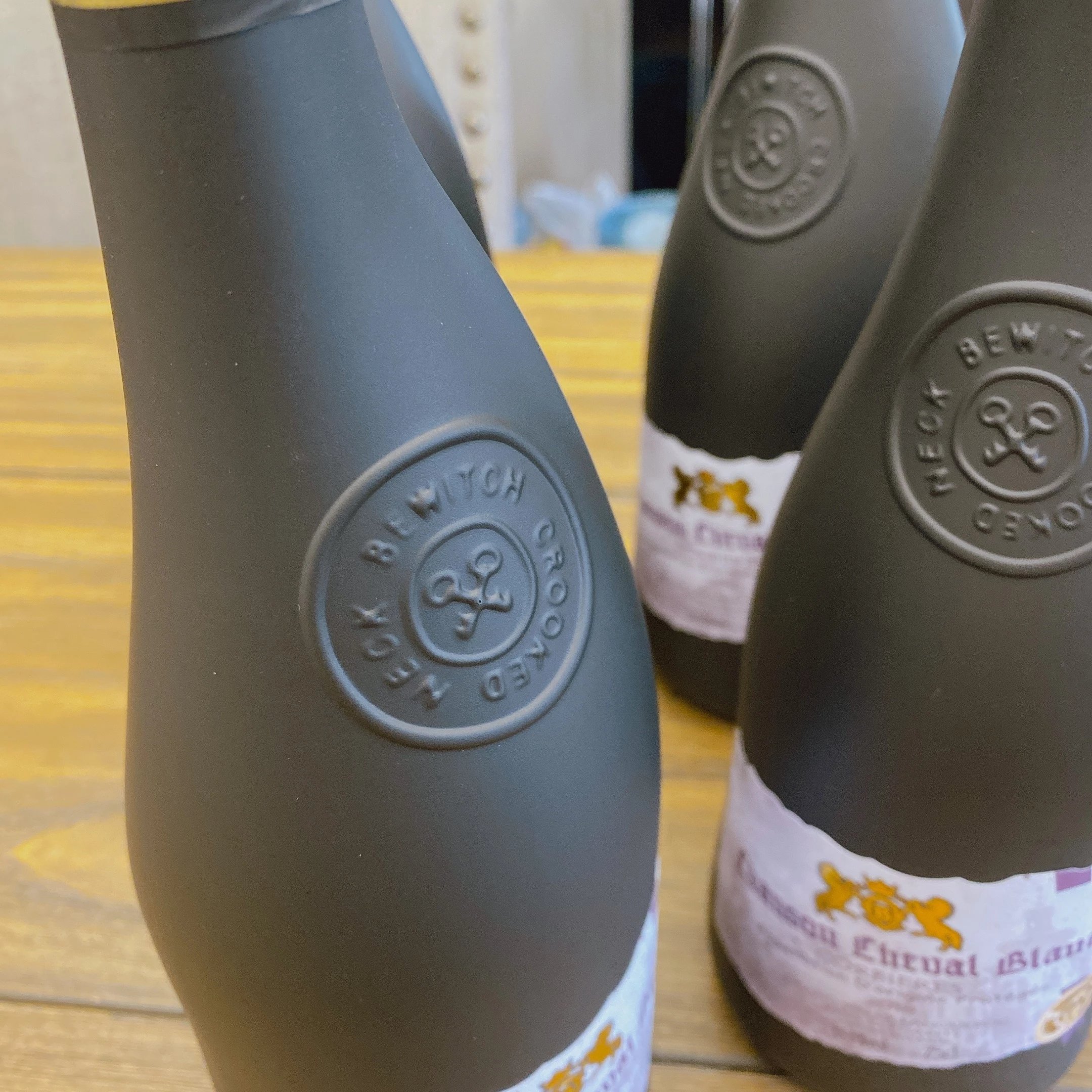 瓶颈歪曲,瓶肚突出,就像醉酒之人歪扭的身躯,很有曲线感,这是歪脖子葡萄酒醉大的特点。而且,瓶身中间还有交叉配置的两把钥匙的浮雕花纹,传统与现代的碰撞,让这瓶酒看起来视觉美感爆棚。