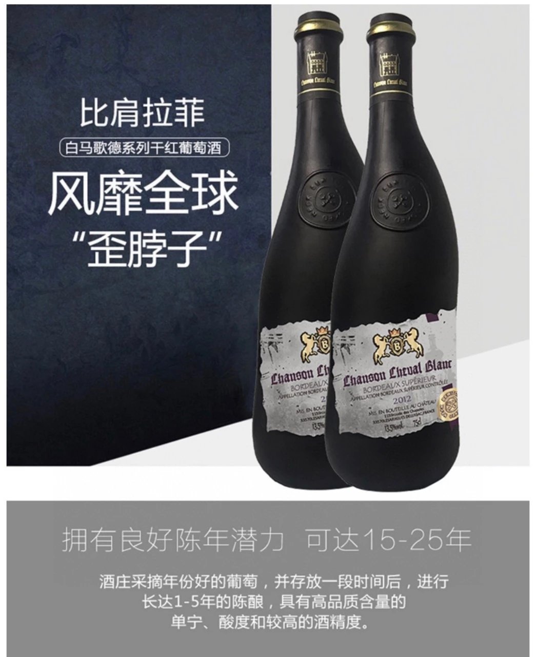 法国歪脖子白马歌德干红葡萄酒750ml*6瓶