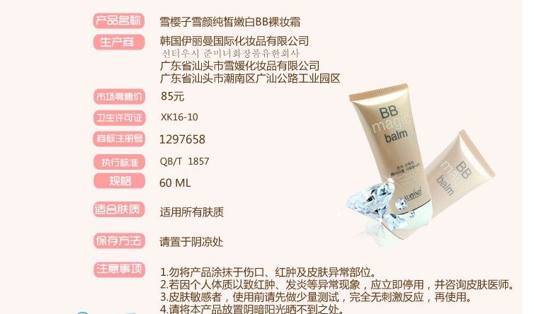 品牌:雪樱子雪颜纯皙嫩白BB裸妆霜