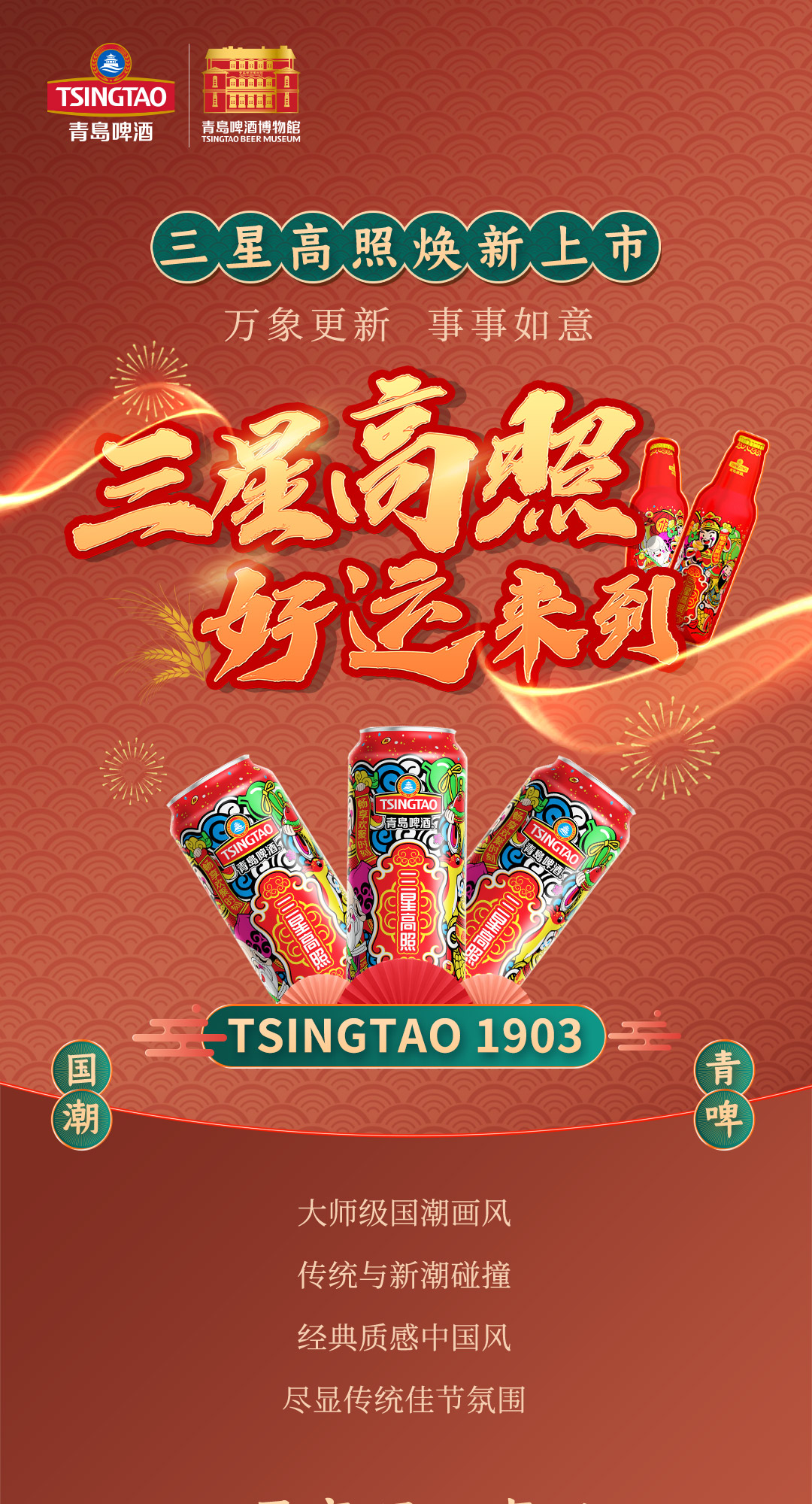 青岛啤酒 三星高照福禄寿 500ml*12听 三星送福 寓意吉祥 送礼祝寿佳品 麦香浓郁香醇爽口