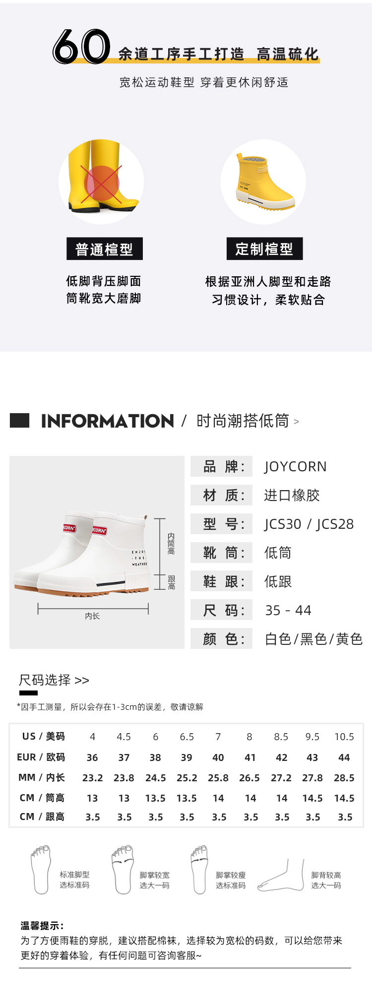 Joycorn雨靴 时尚款外穿防水防滑耐磨胶鞋短筒雨靴|品牌直发