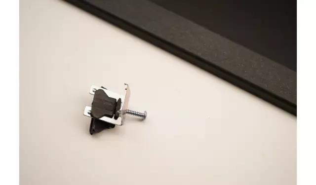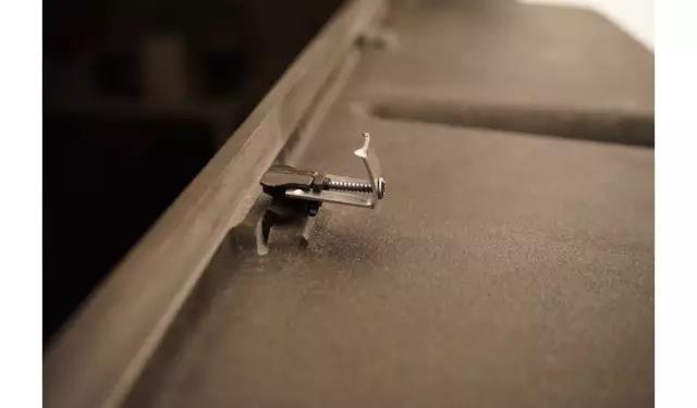 配有固定器,可以在台上盆安装的时候,使用这个固定器从台下固定,使用方式很简单,放入台面以后,把固定器插入固定槽,拧紧螺丝即可