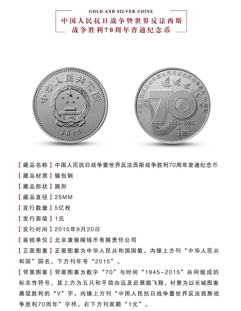 河南中钱 2015年抗战70周年康银阁装帧卡册 整包20本