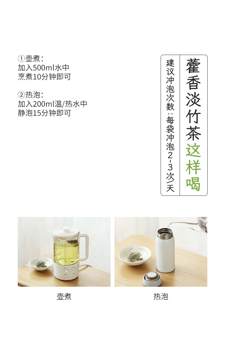 「藿香淡竹茶」 身体有水湿 配方平和 湿热寒湿都适用