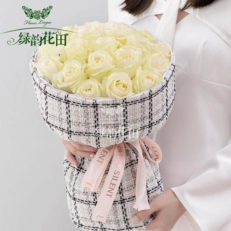 小香风系列-19枝红玫瑰香槟白洛神玫瑰高端定制网红花束38女神节女生节送老婆女友闺蜜生日纪念日祝福送花