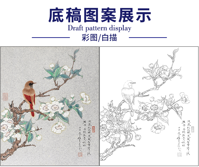 任重花鸟工笔画白描底稿《花开白雪香》临摹勾线高清打印稿RD38