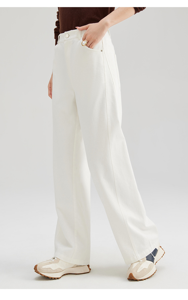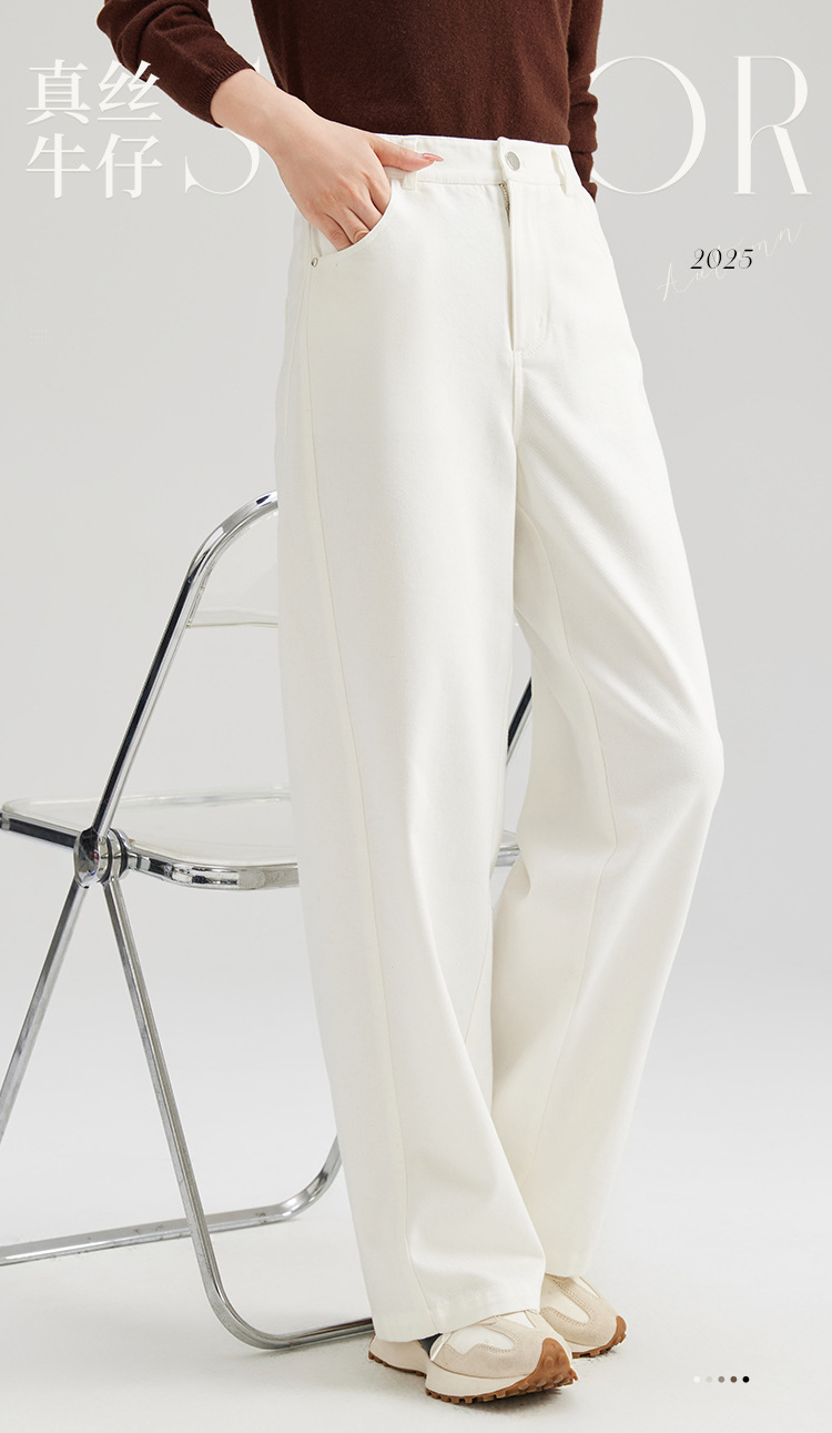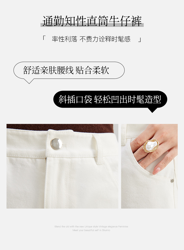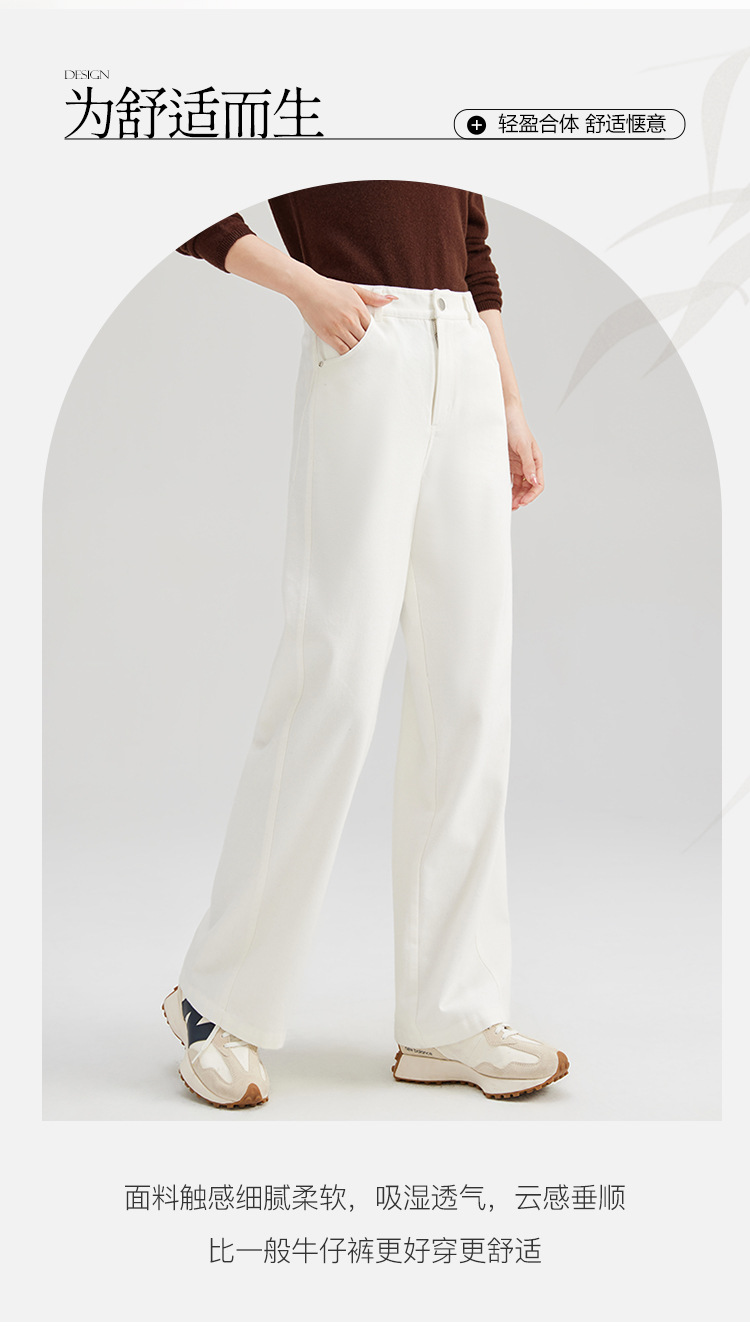 SM 2011纯白色休闲高腰阔腿牛仔裤显瘦质感直筒日常休闲裤