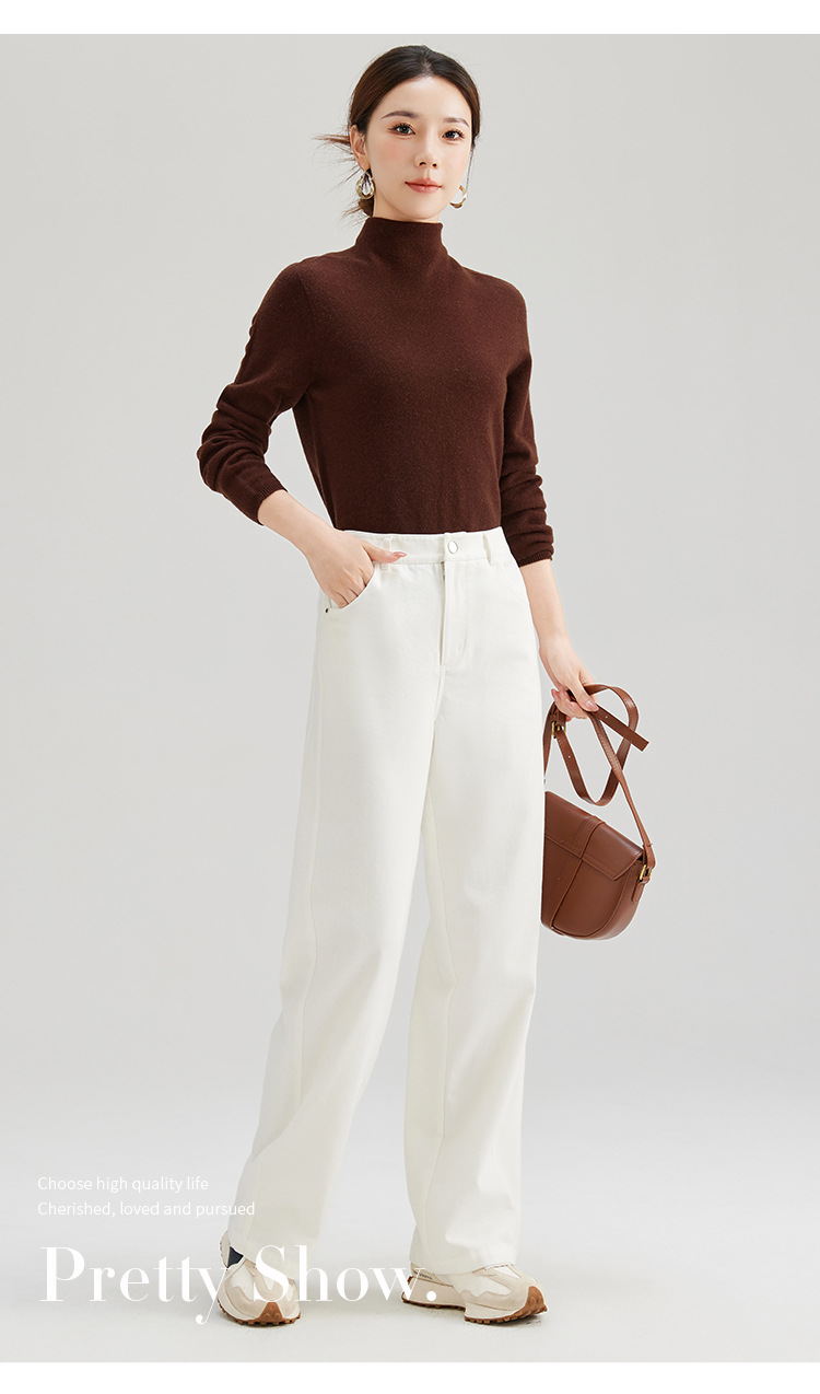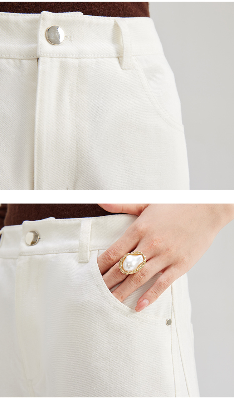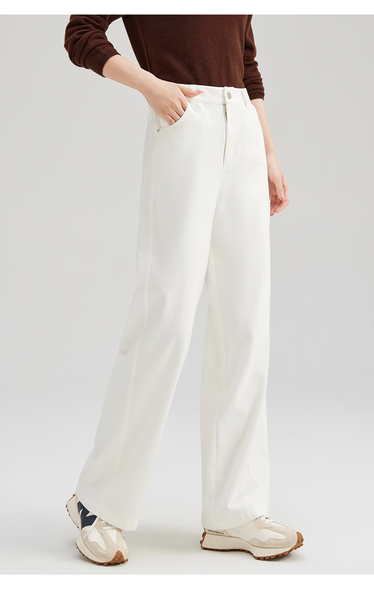 SM 2011纯白色休闲高腰阔腿牛仔裤显瘦质感直筒日常休闲裤