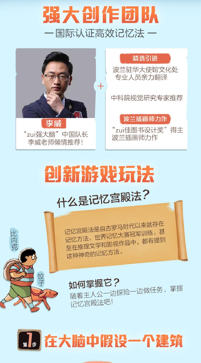 这套“记忆宫殿训练书”通过找线索、闯迷宫、读故事等不同的玩法,可以锻炼你的逻辑推理能力,提高你的记忆力,让你的大脑变得更加聪明!而这一系列锻炼记忆力的方式,都可以统称为记忆宫殿法。