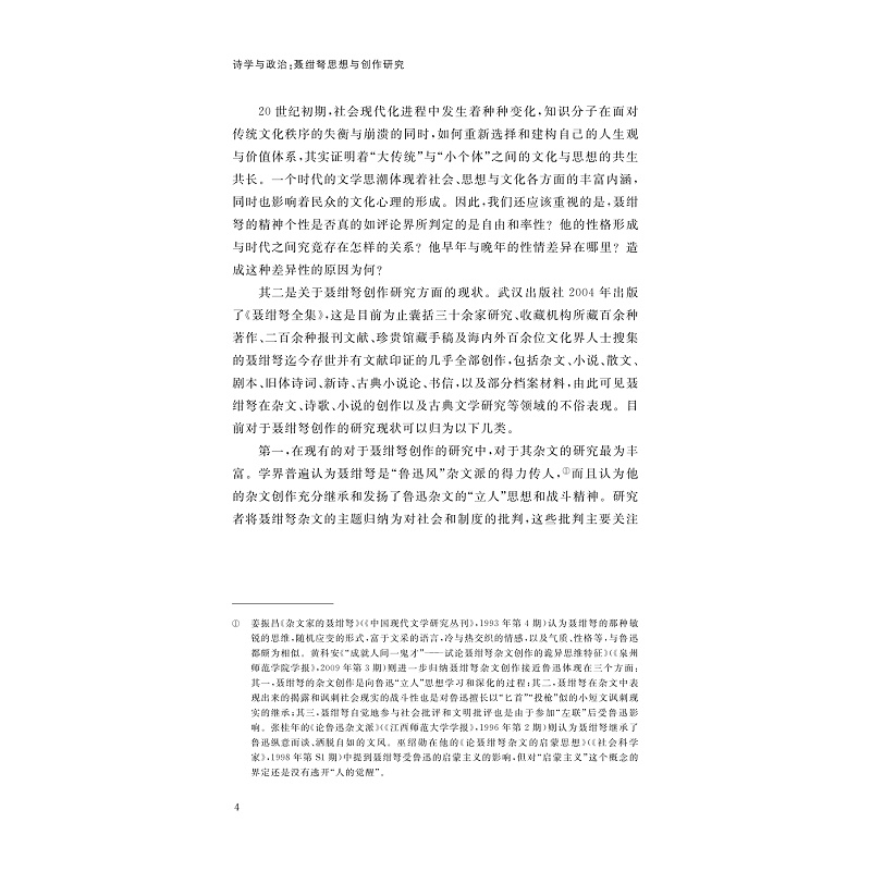 本书稿研究聂绀弩文艺观形成与文学创作关系问题,梳理他的创作情况与研究现状,重点考察其进入晚年时期大量选择旧体诗创作的原因、书写状态和心理因素并分析其背后的文化与政治因素,以此考察其文艺观、创作与现当代文学、文化与传统之间的关系以及其呈现的丰富性,为聂绀弩研究提供整体的研究资料与研究思路。分章内容包括:聂绀弩早期文艺观形成研究、聂绀弩文学思想与精神个性研究、聂绀弩小说的叙事与意境研究、聂绀弩杂文的体式与风格研究、聂绀弩诗歌的形式与修辞研究、聂绀弩晚年文艺观转变研究等。