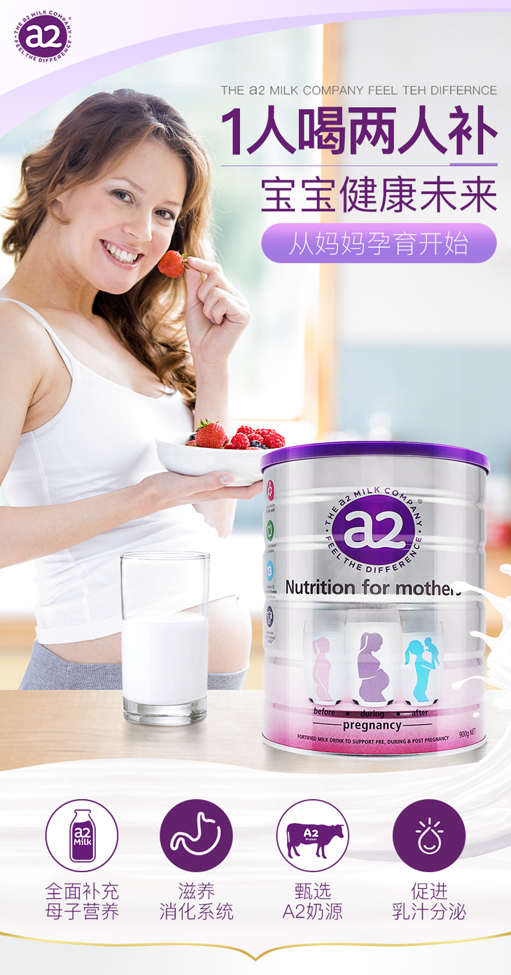 【海外直邮】A2 孕妇早期哺乳期晚期怀孕营养DHA成人牛奶粉 900g