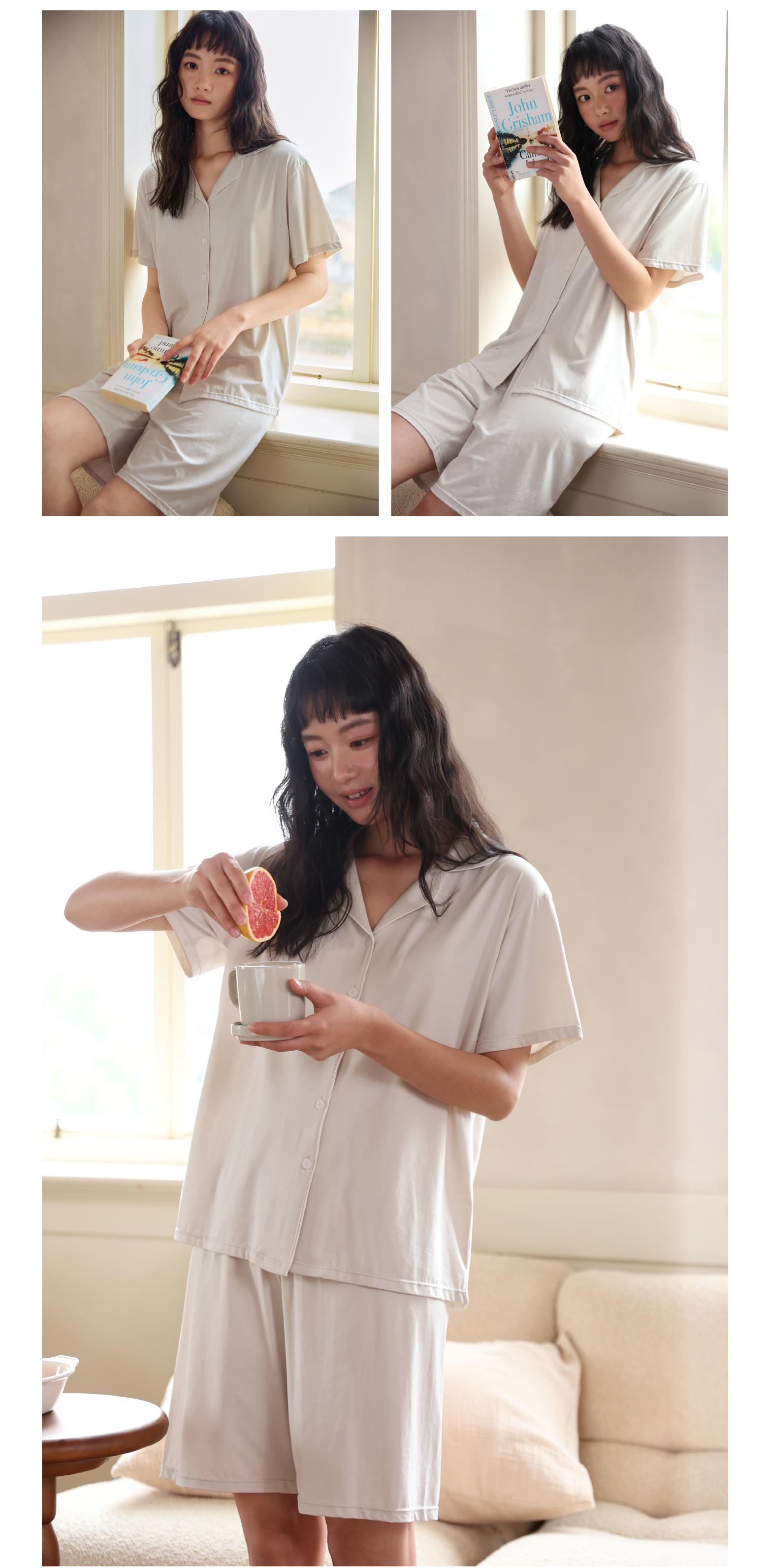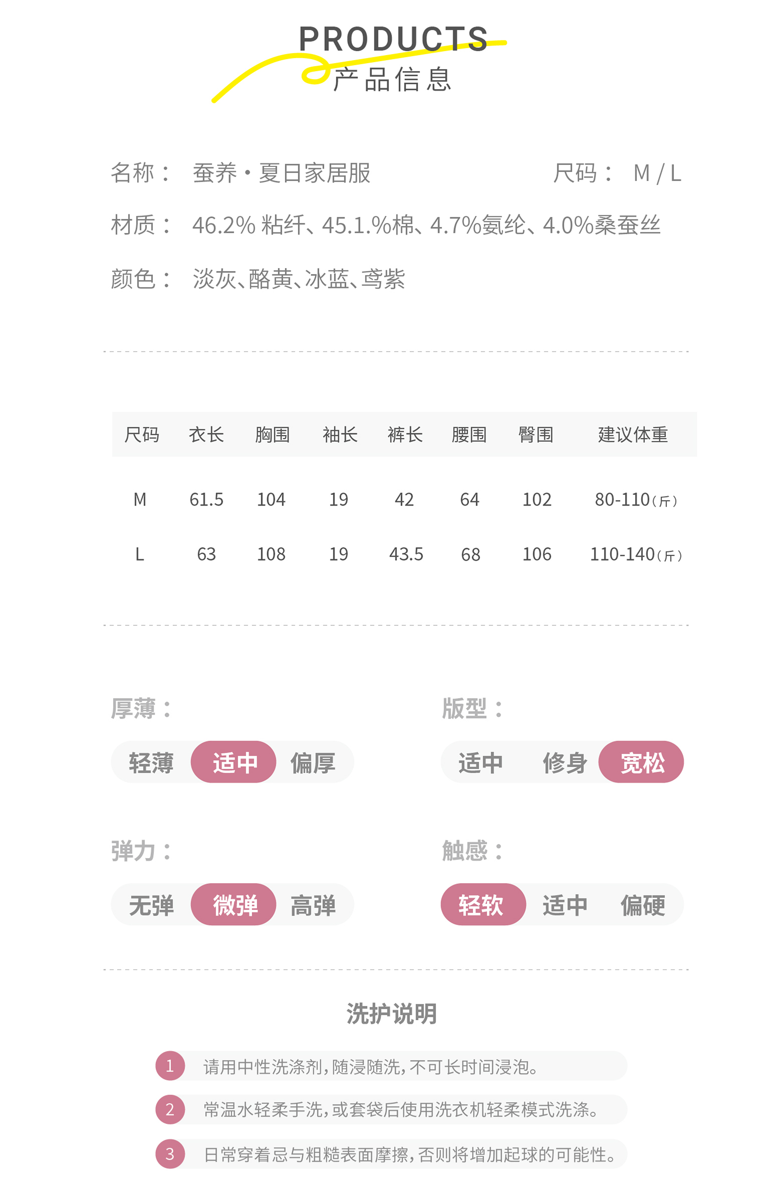 KEMU壳木蚕养·夏日家居服9831 面料柔软透气亲肤弹力奢华 宽松有度 显瘦藏肉 慵懒不邋遢 四色可选