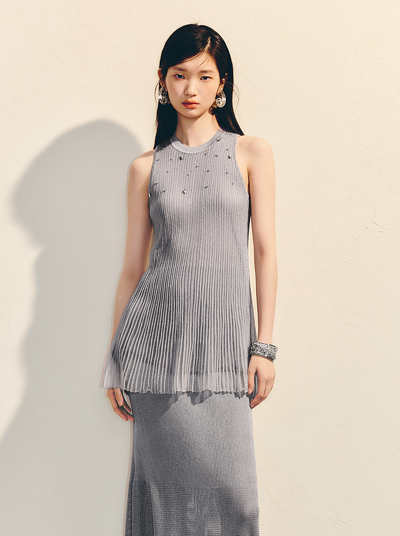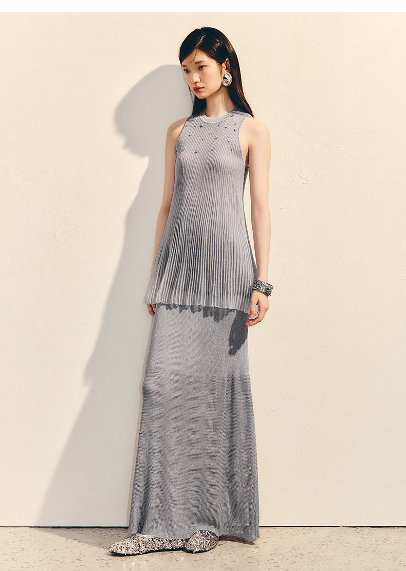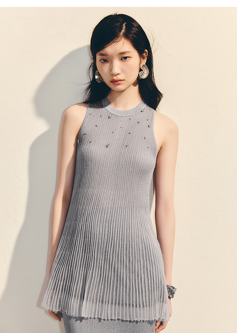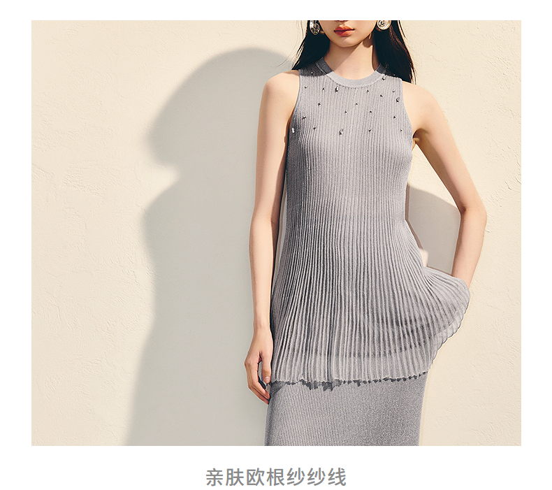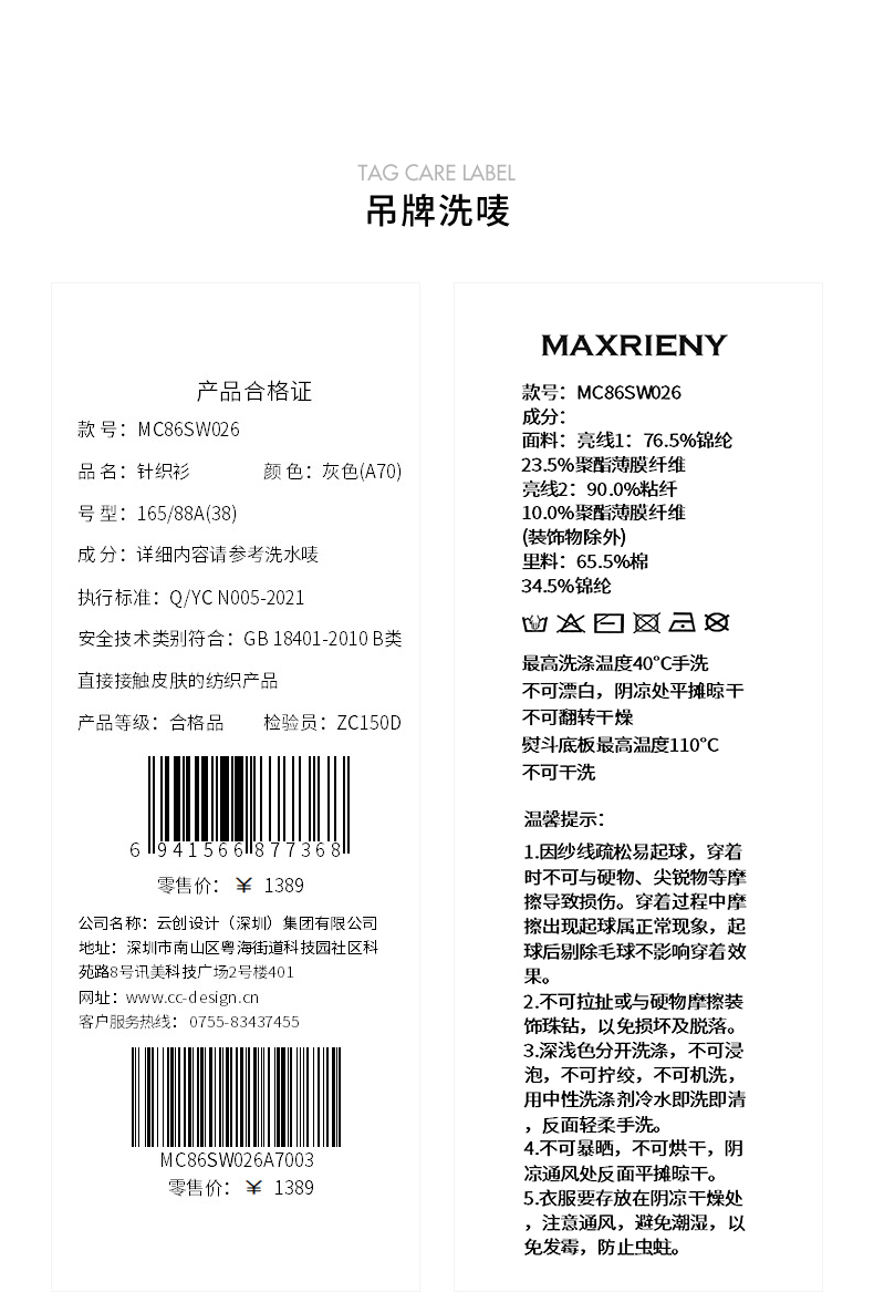 【商场同款】MAXRIENY宽松a摆针织衫25夏肌理感挂脖欧根纱上衣(货号:MC86SW026)