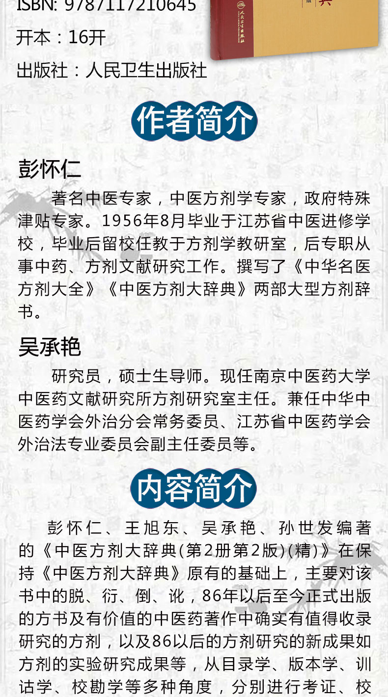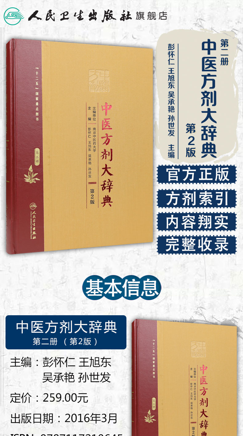 [旗舰店 现货]中医方剂大辞典 第2版 第二册 彭怀仁 王旭东 吴承艳 孙世发 主编 方剂学 9787117210645 2016年3月参考书 人卫