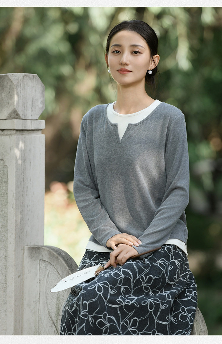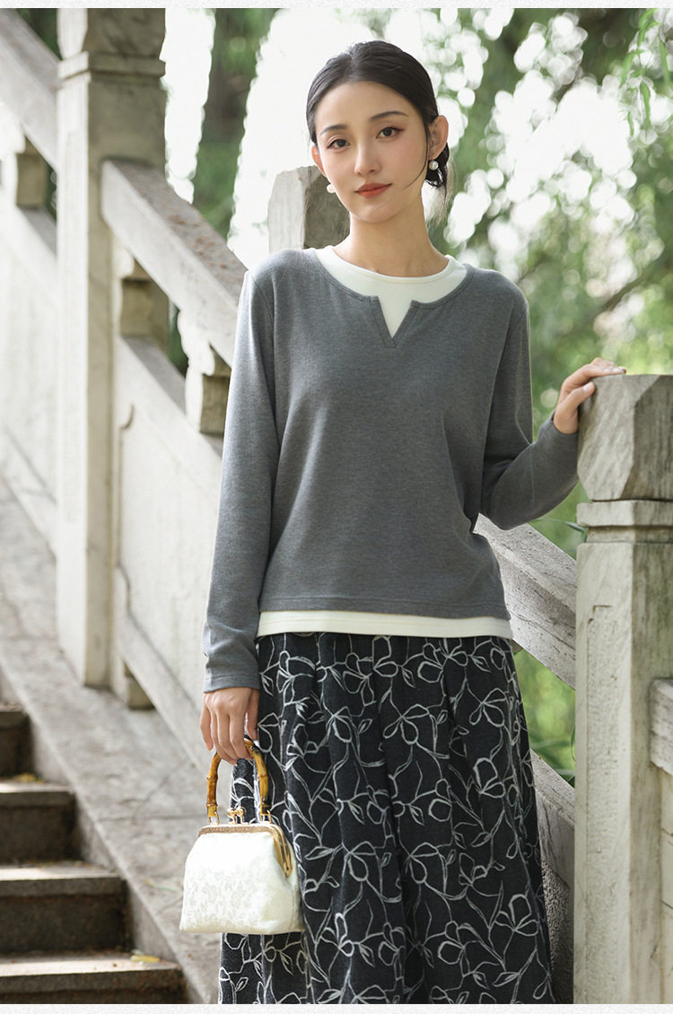 「自」全新升级【铂金会员146/天猫199/差价53】(41314)洛诗琳气质假两件打底衫女2026新款叠穿德绒显瘦保暖上衣
