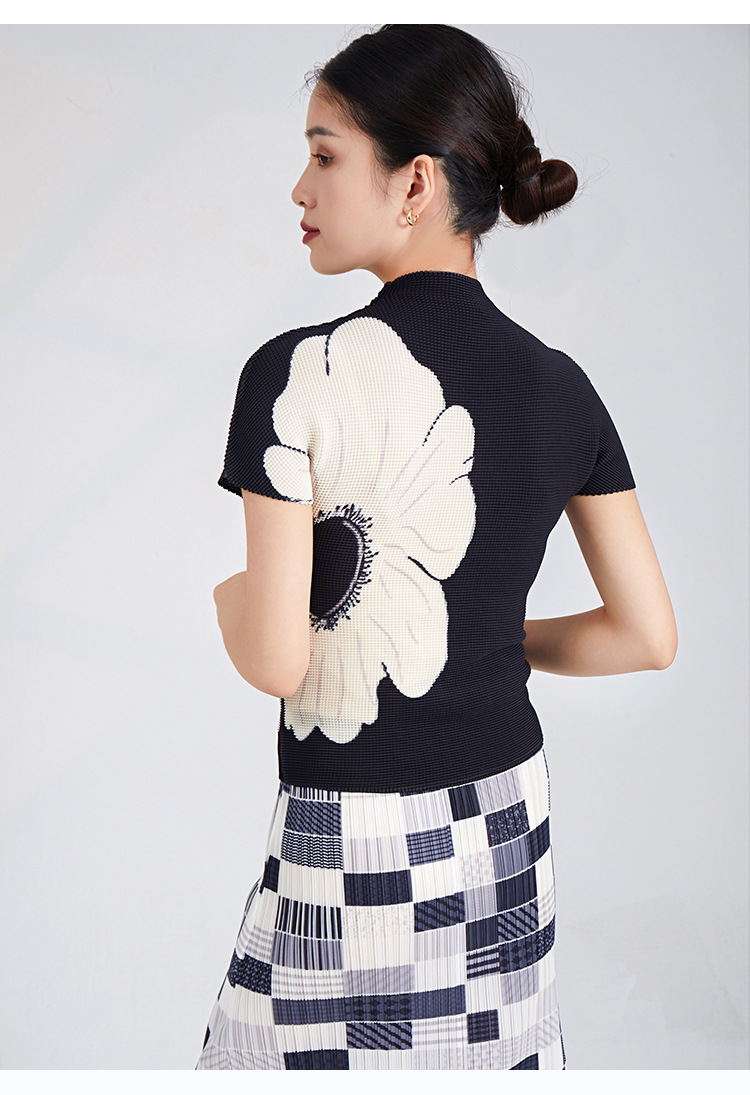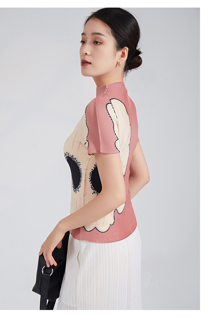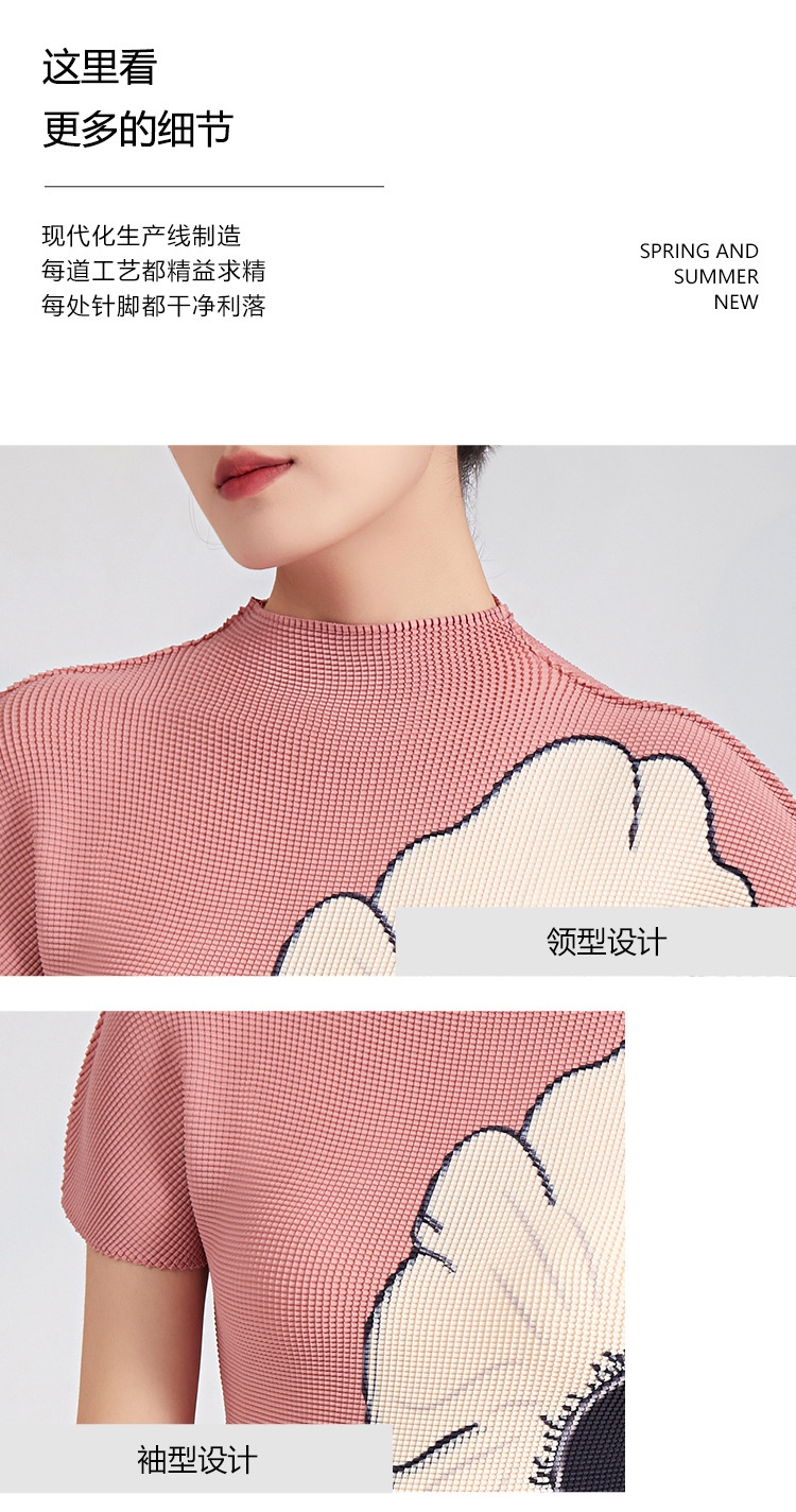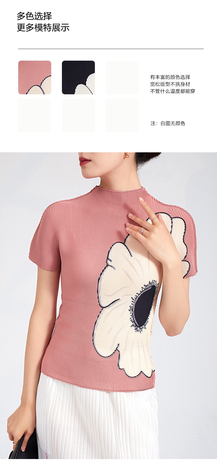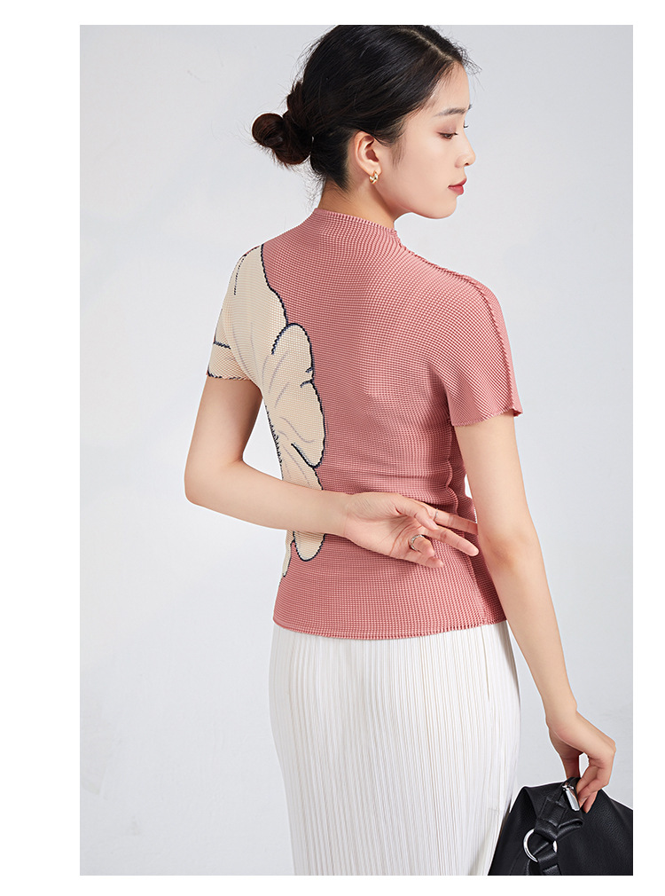 「自」全新升级【铂金会员183/天猫239/差价56】(14333)洛诗琳气质褶皱T恤2025夏季新款简约印花修身通勤百搭上衣女