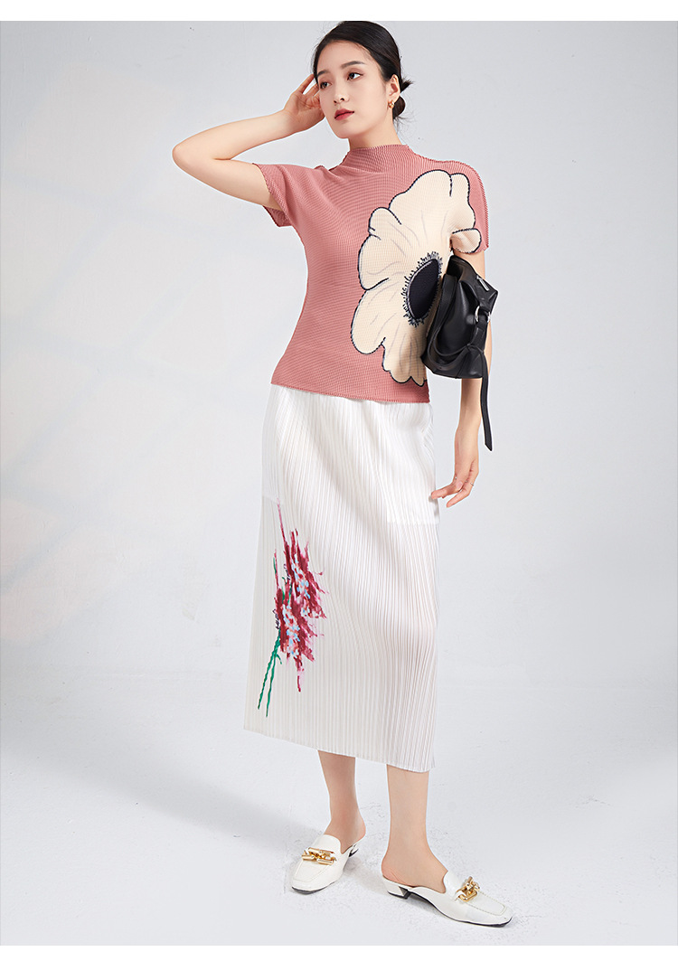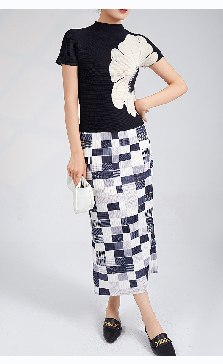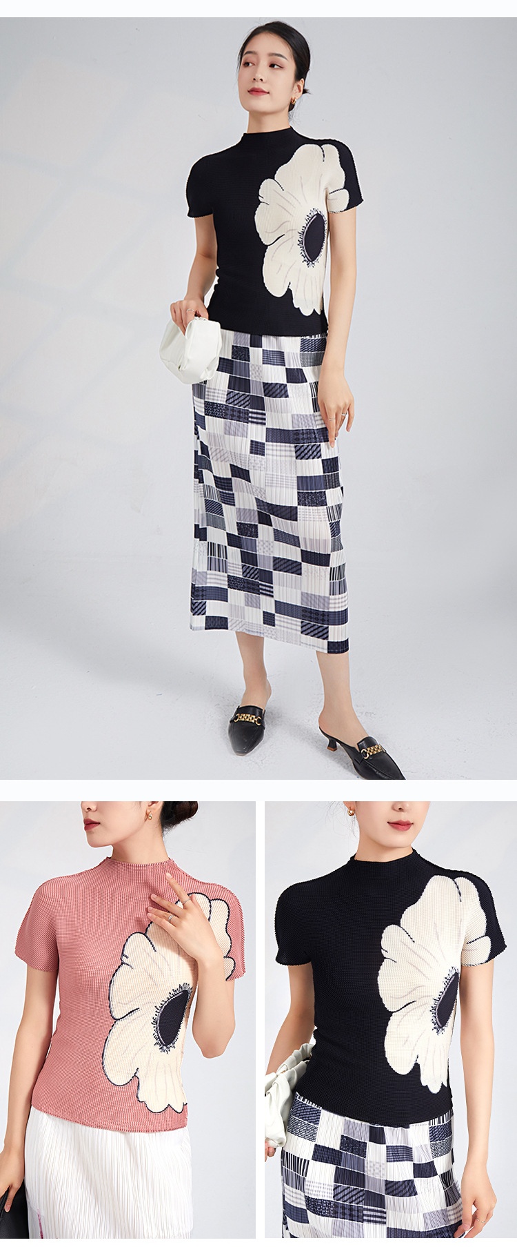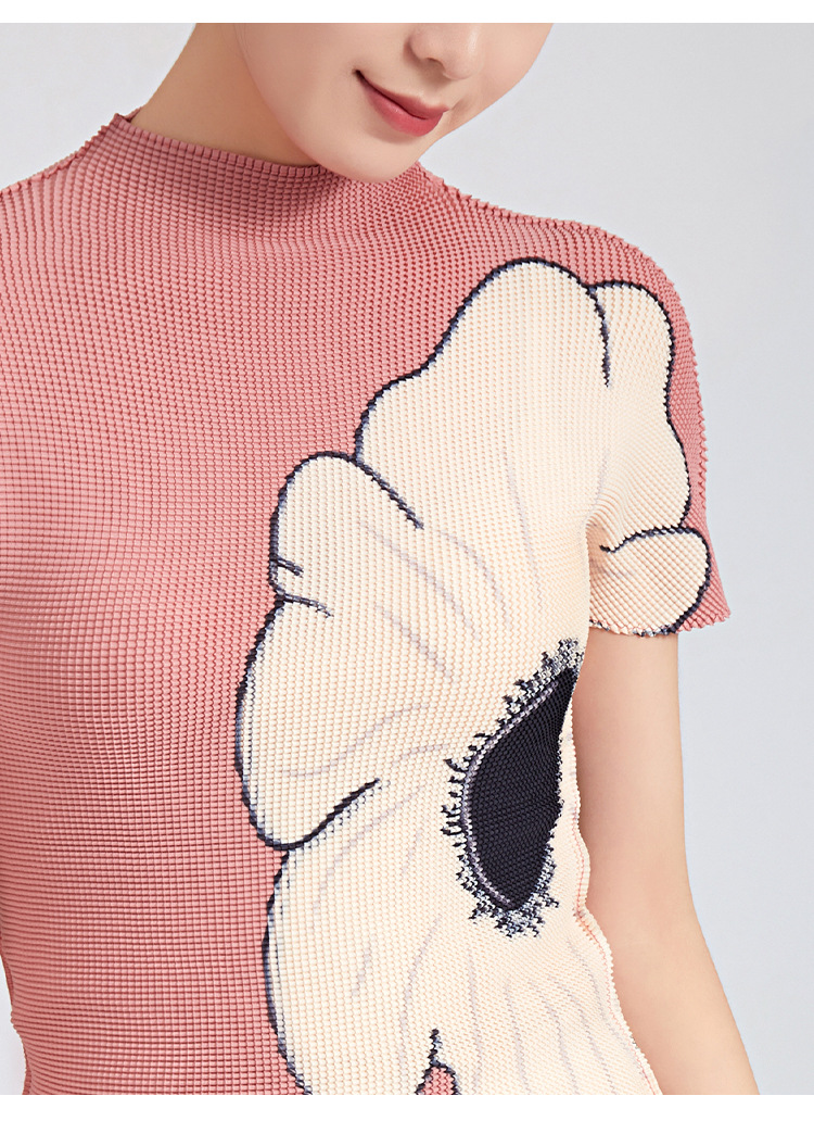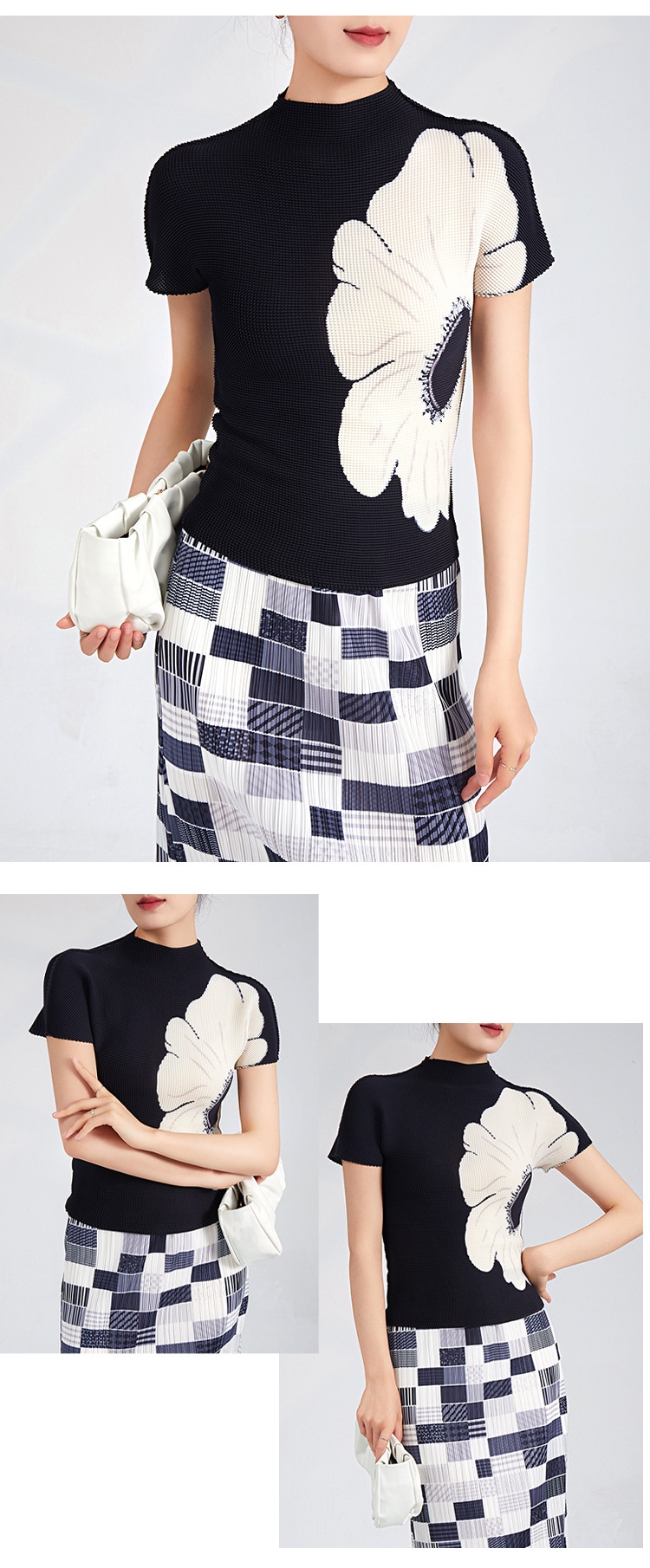 「自」全新升级【铂金会员183/天猫239/差价56】(14333)洛诗琳气质褶皱T恤2025夏季新款简约印花修身通勤百搭上衣女