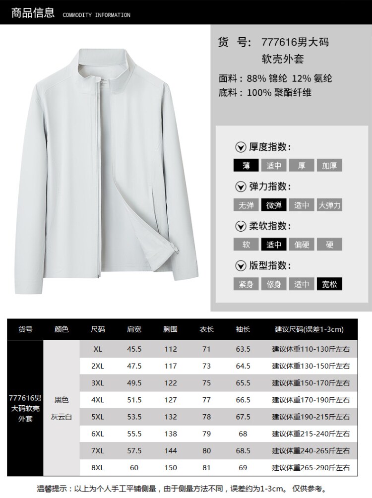 【DZP】大依优型大码男装软壳立领夹克外套时尚休闲纯色百搭胖子加肥加大