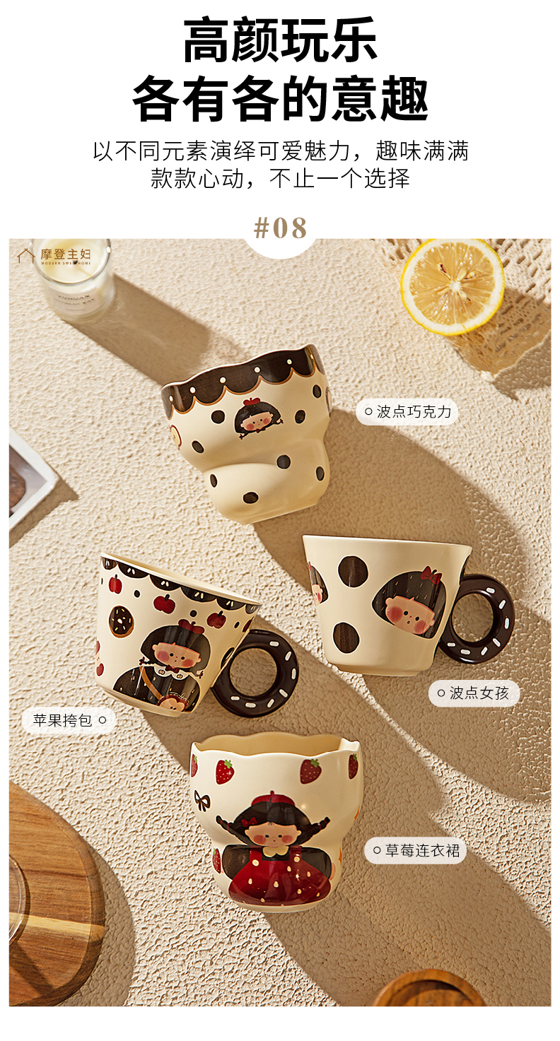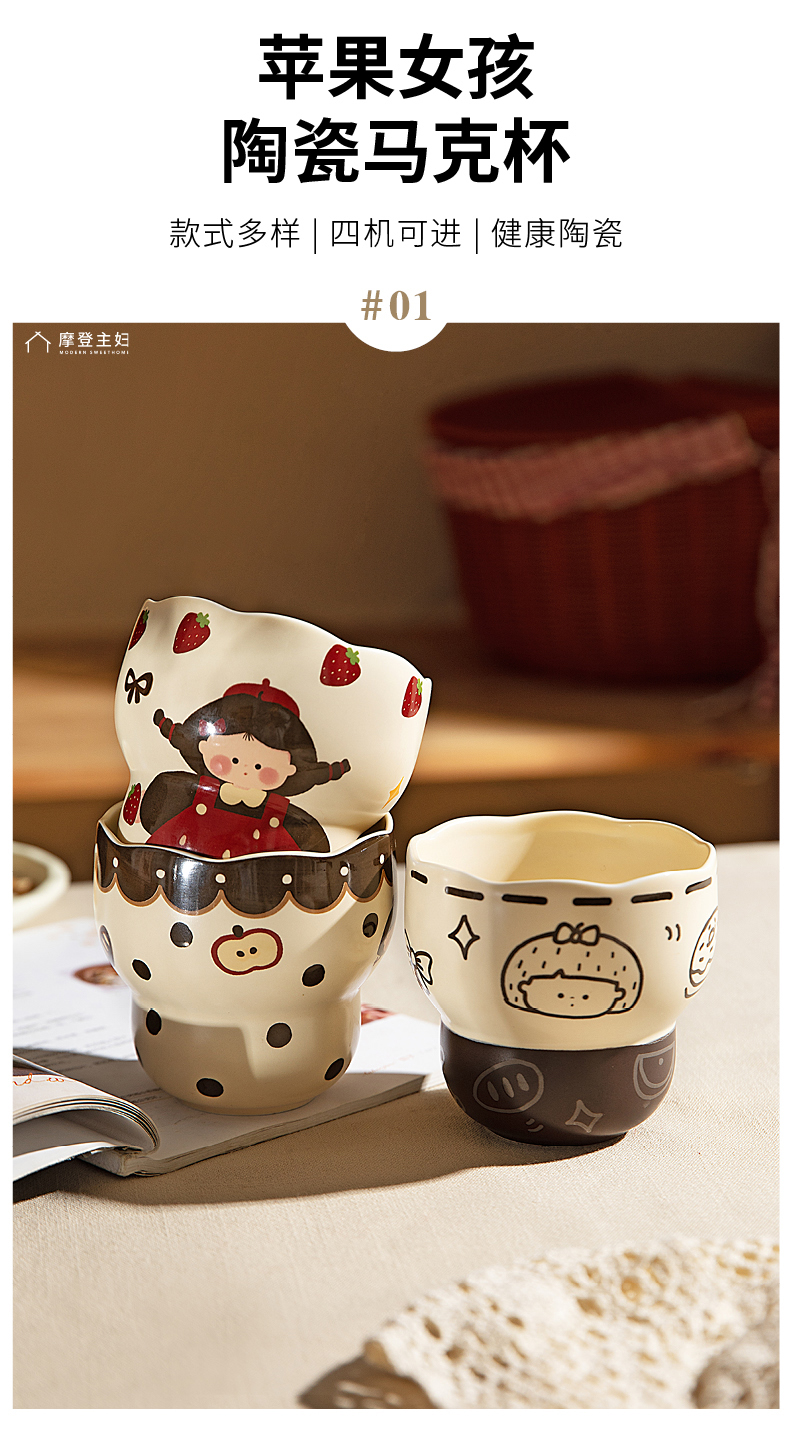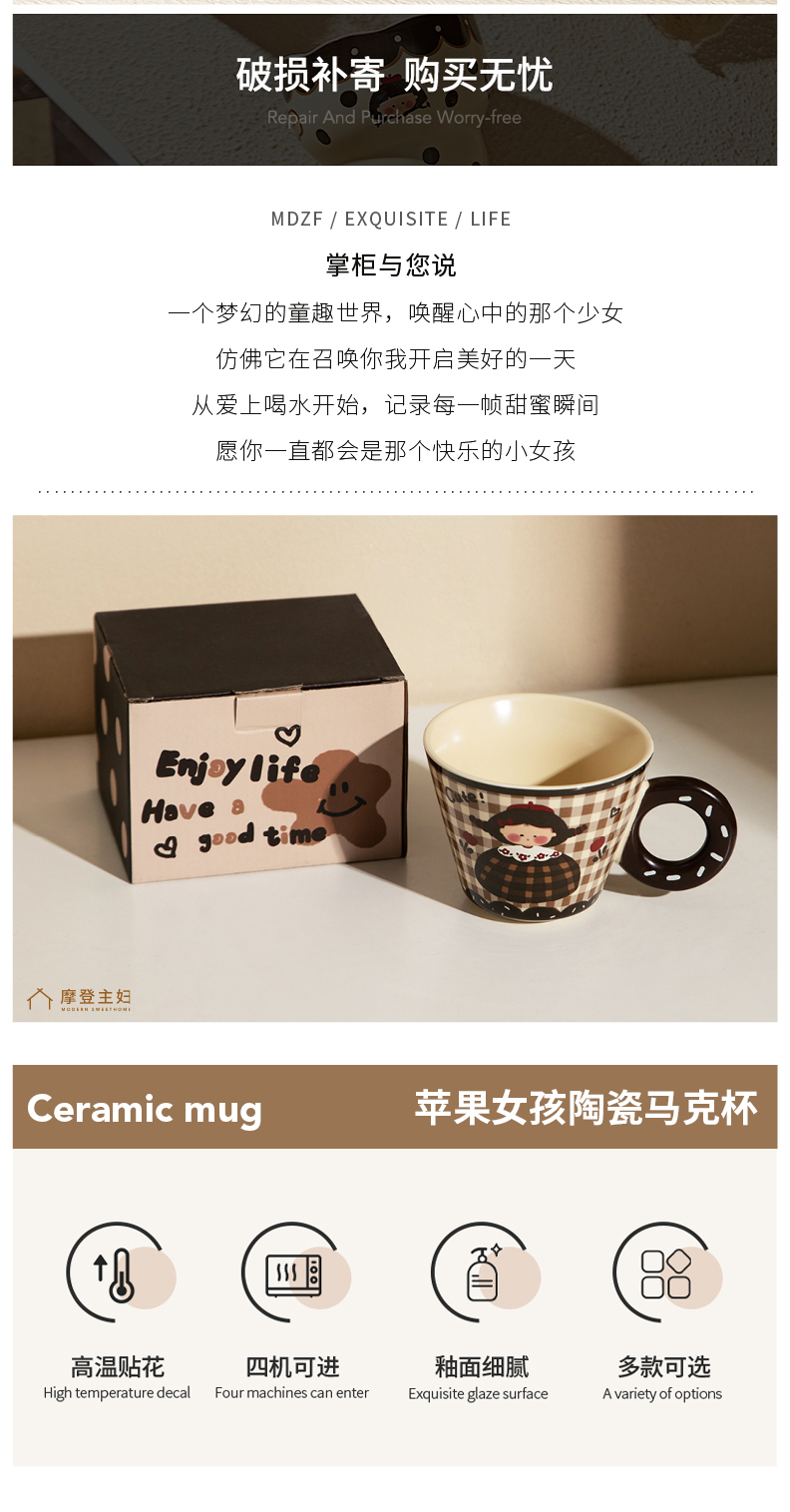 摩登主妇 陶瓷马克杯可爱圣诞杯子家用水杯高颜值早餐杯手握咖啡杯