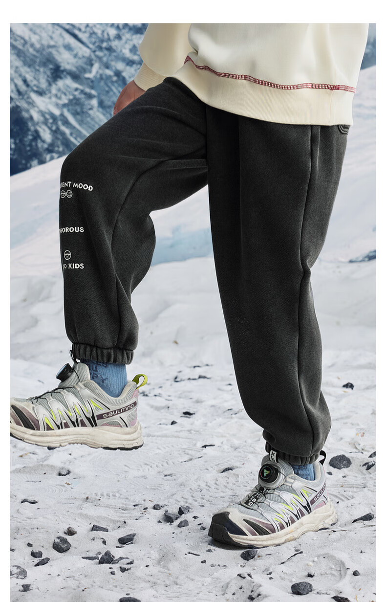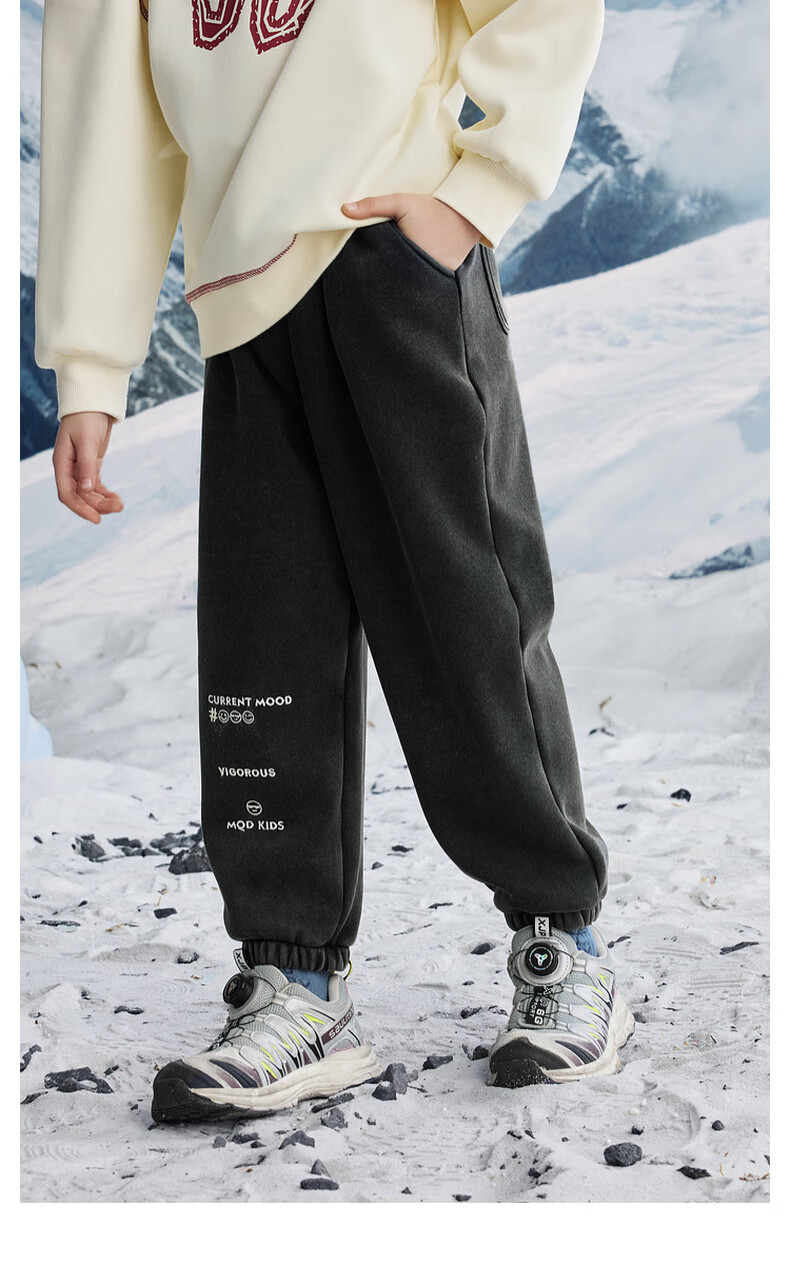 【MQD】冬季男大童潮酷休闲学院风运动跑步加绒卫裤针织裤