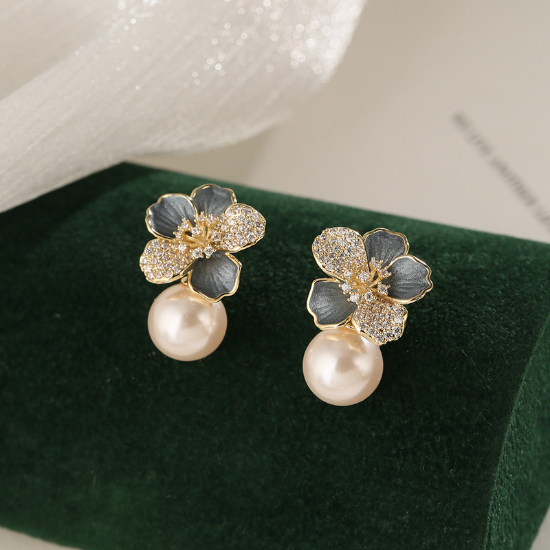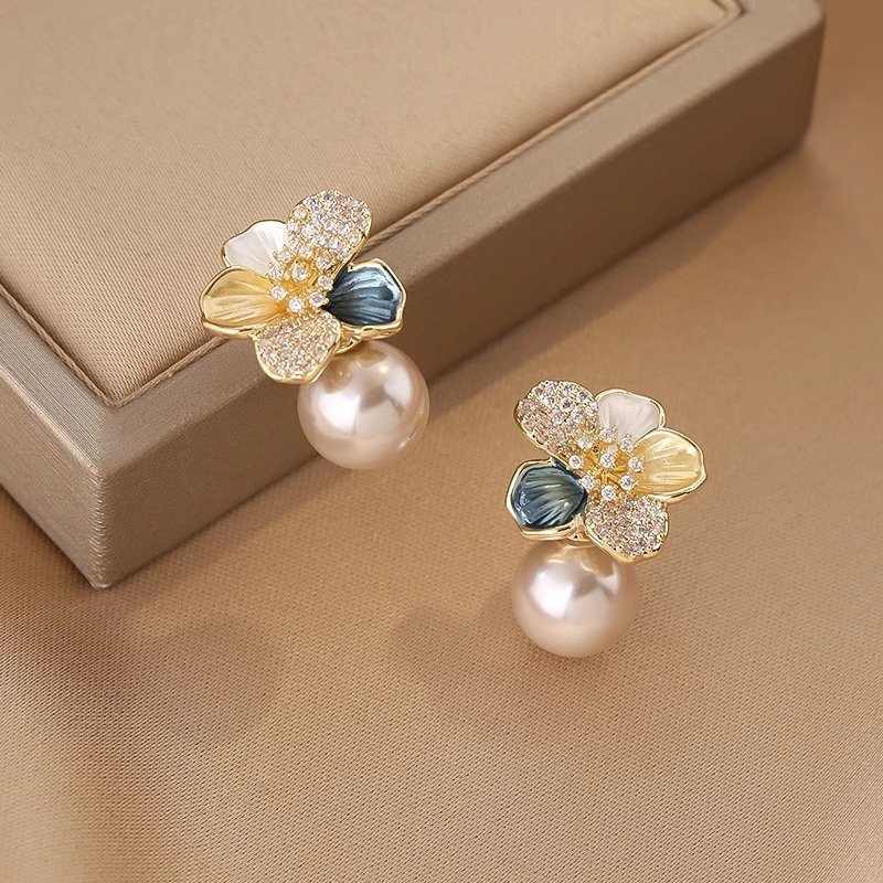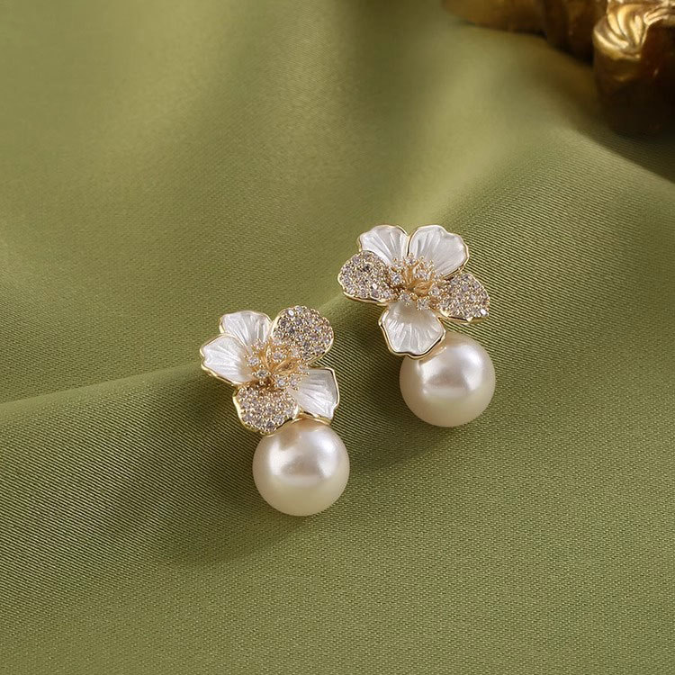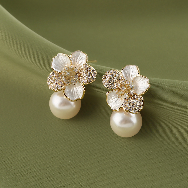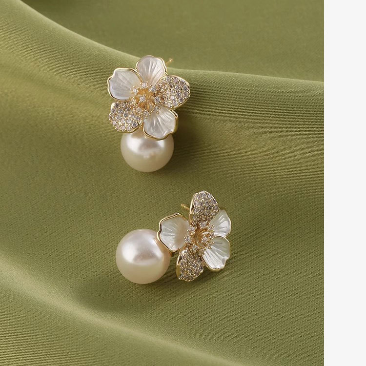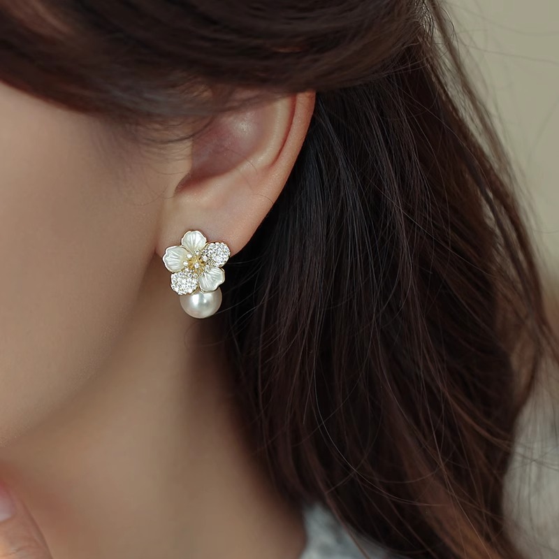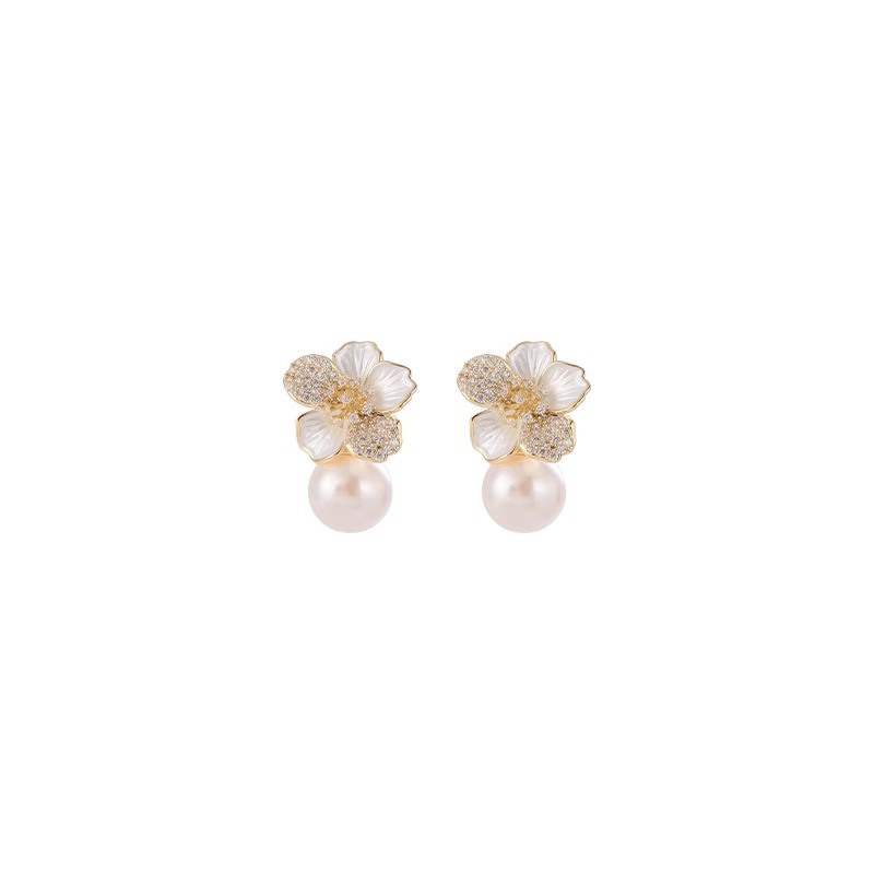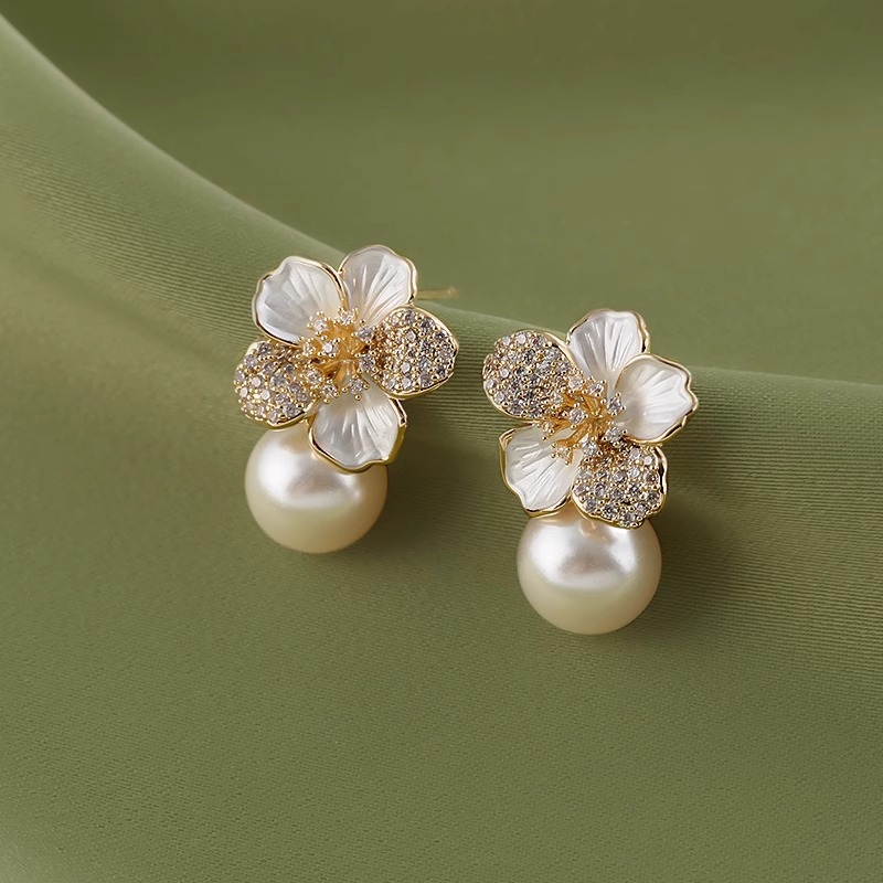 雀说 滴油珍珠耳饰女花朵耳环轻奢高级感设计感耳环SEH120030