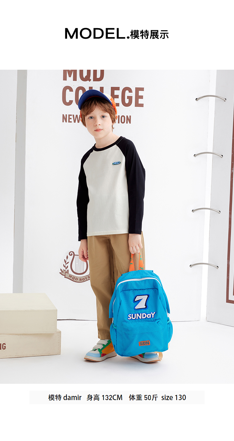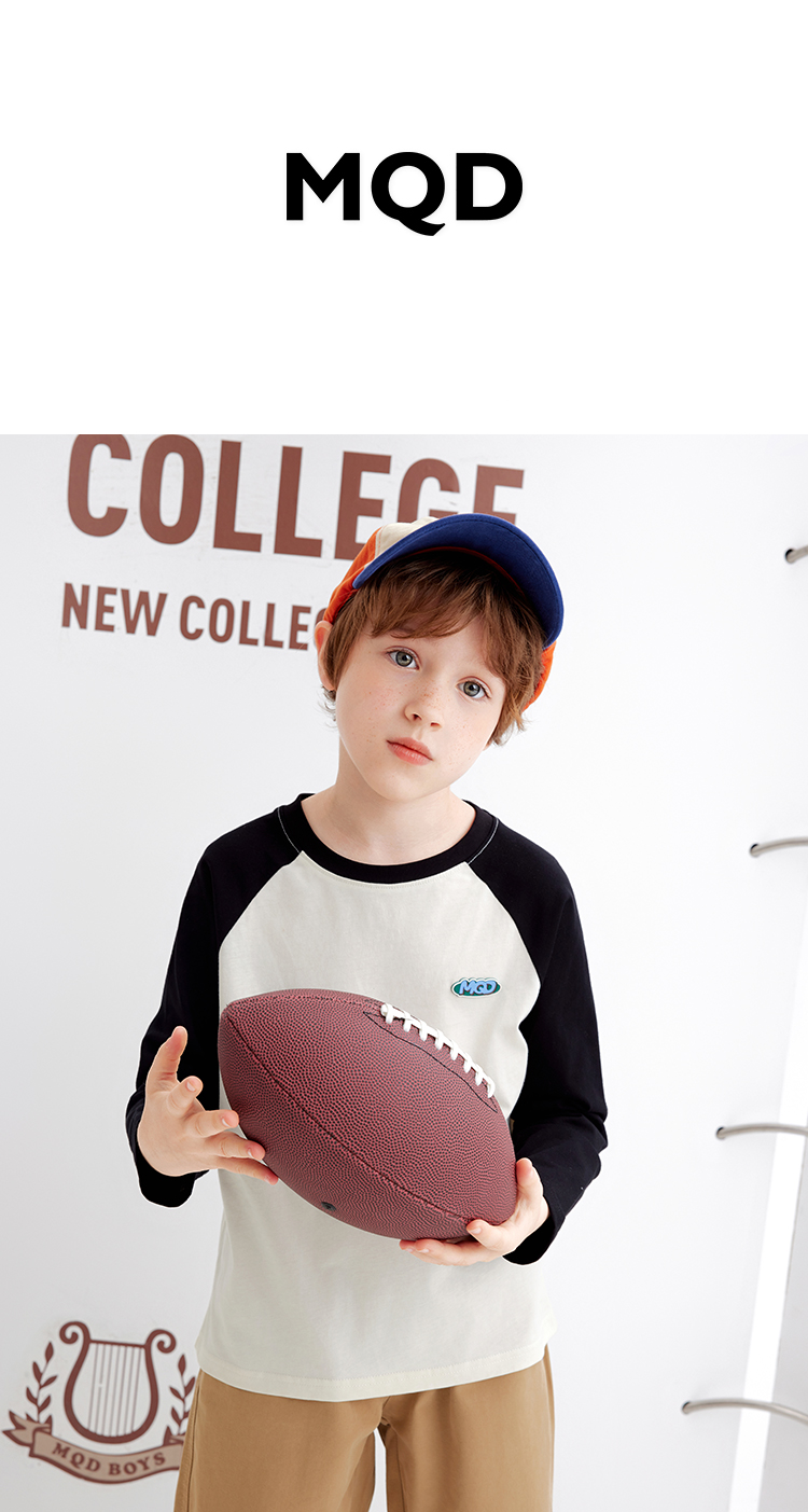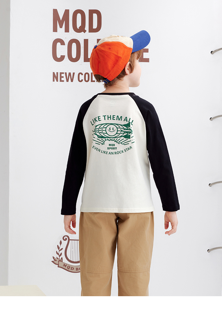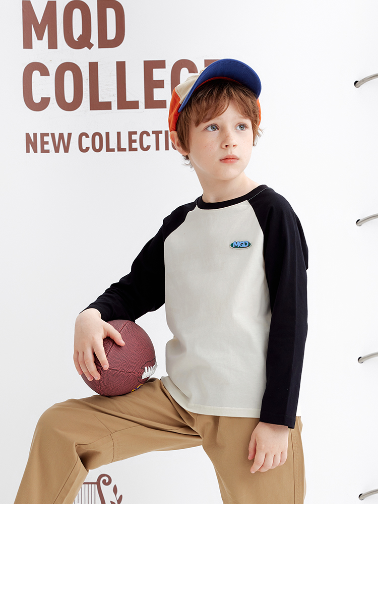 【秒2】【MQD】童装儿童春秋新款圆领休闲T恤宝宝撞色秋季长袖上衣9633W0312