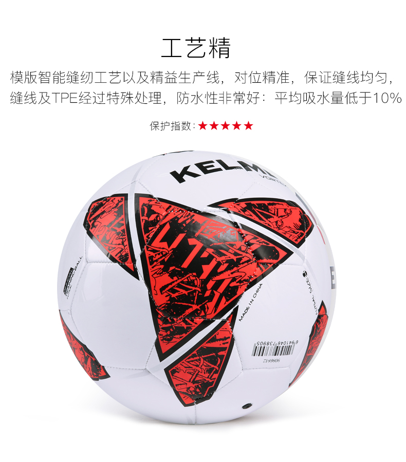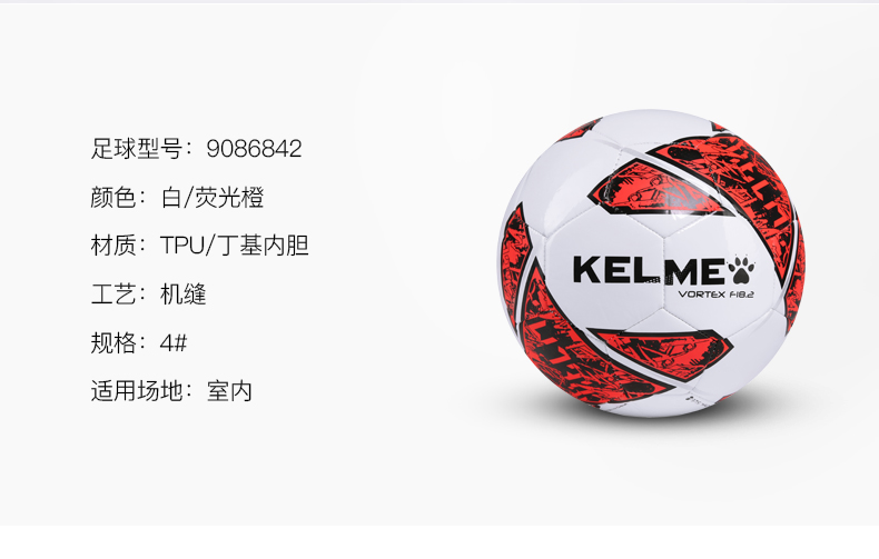 KELME卡尔美低弹足球室内五人制比赛足球机缝足球4号足球学生用球