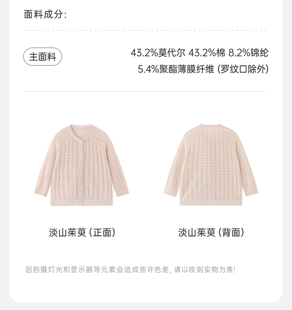 【商场同款】英氏儿童针织衫春夏季长袖女童柔软透气毛织开衫新款