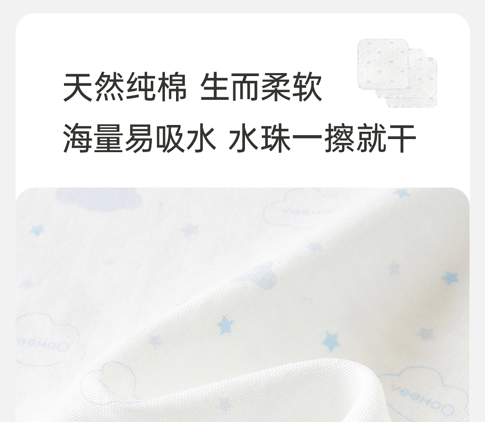 【商场同款】英氏儿童手绢纯棉吸水手帕宝宝洗脸巾毛巾三条装方巾