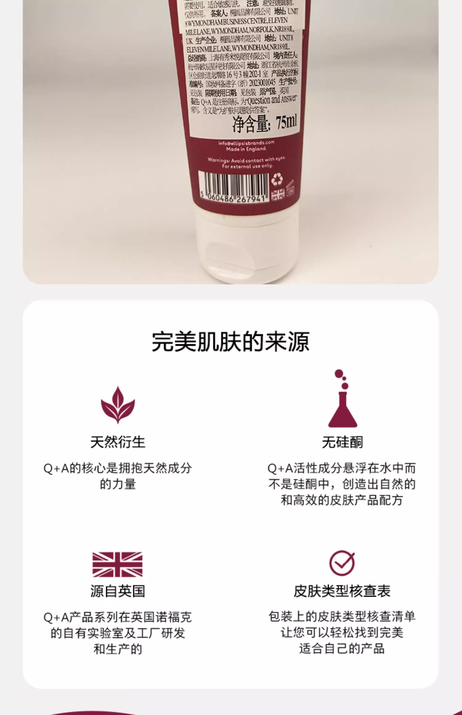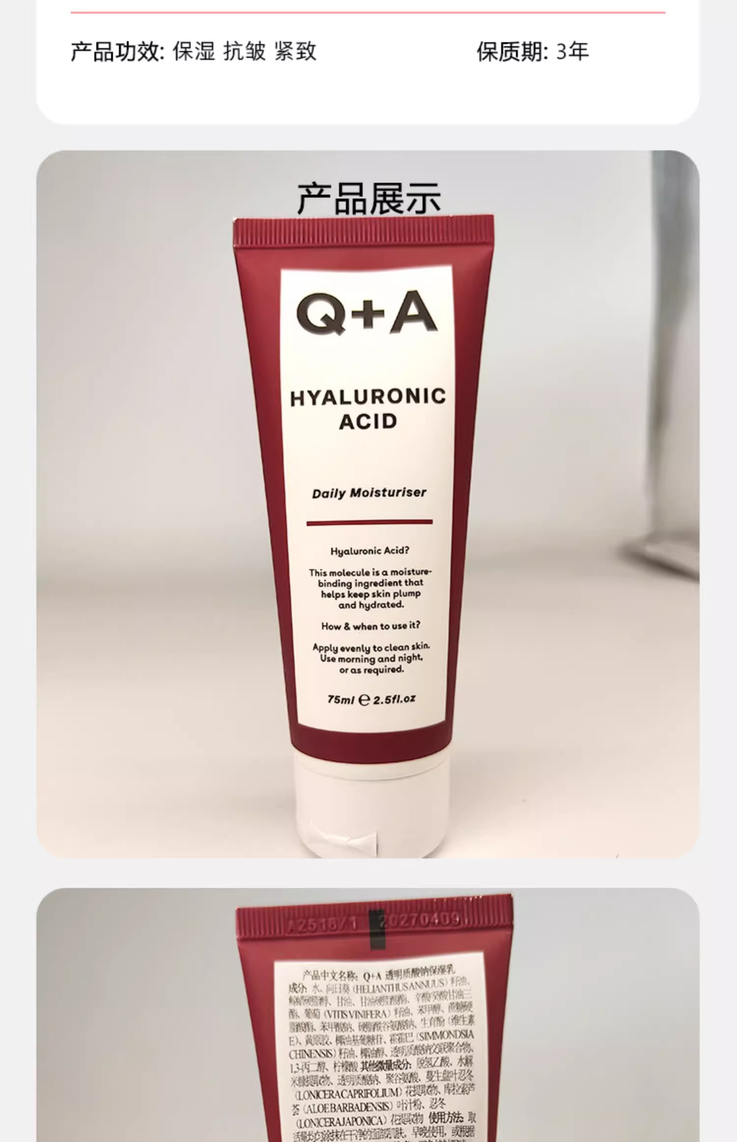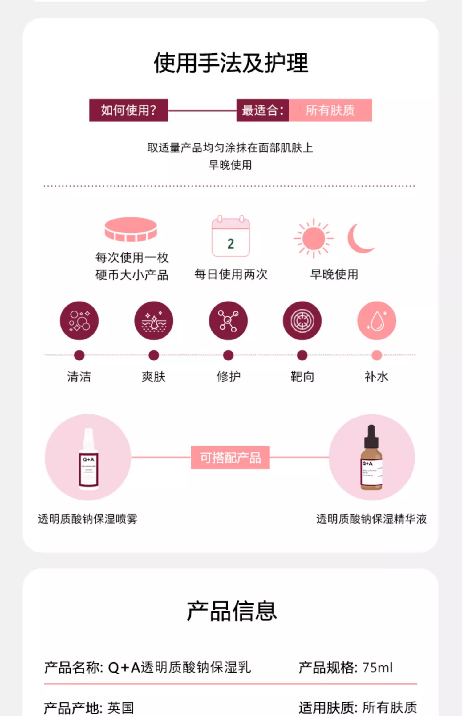 【积分兑换】美国Q+A透明质酸钠保湿乳液75ml