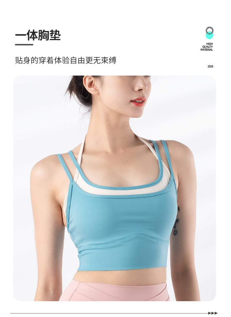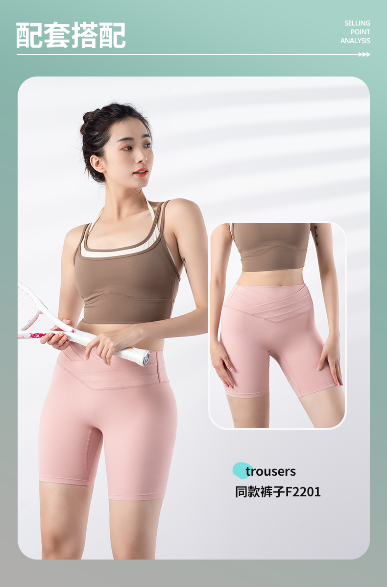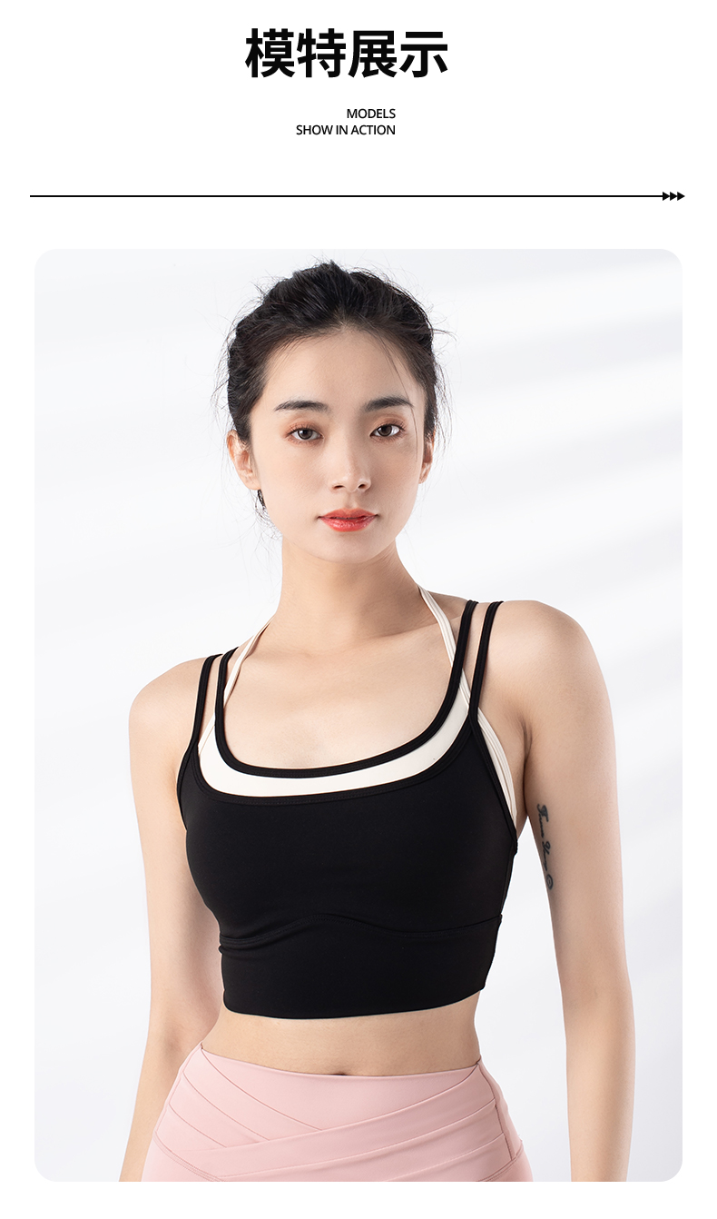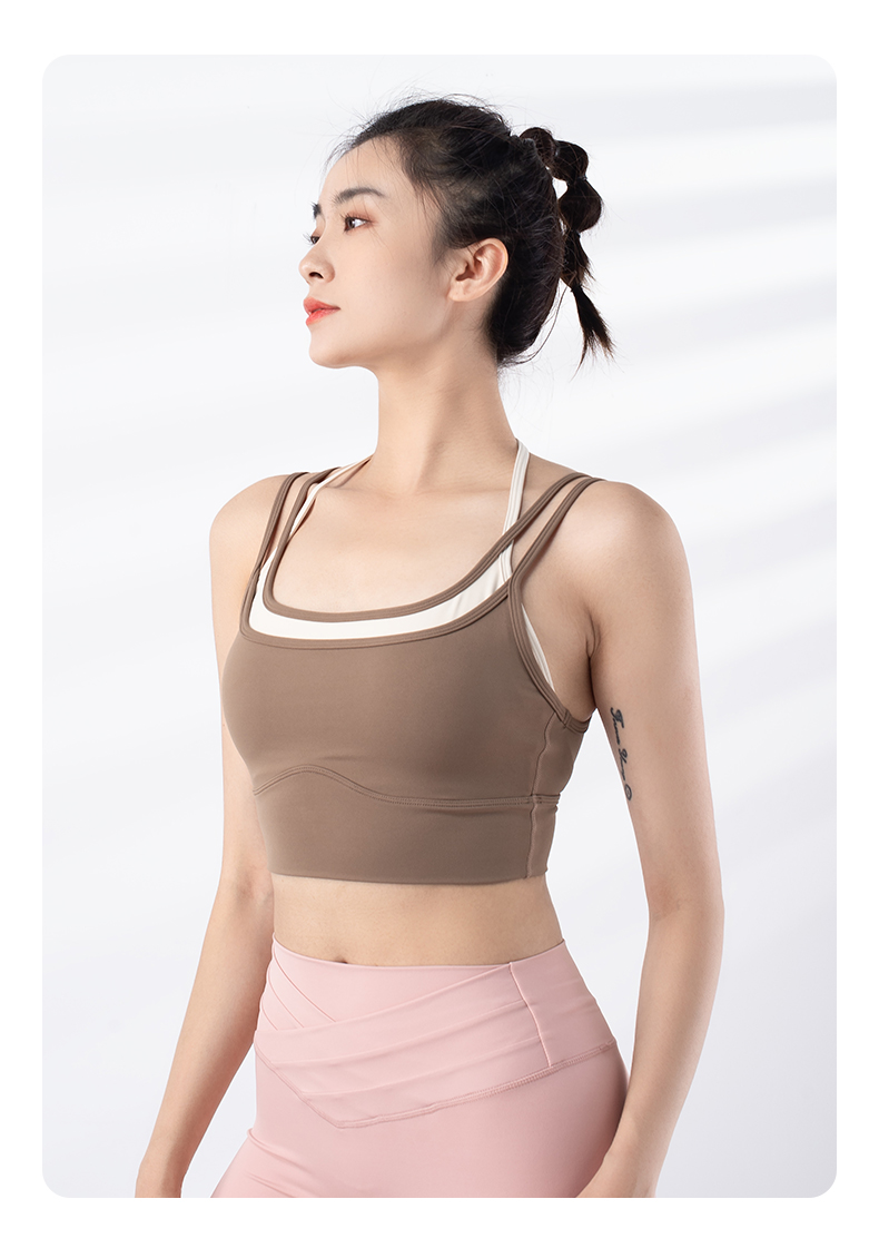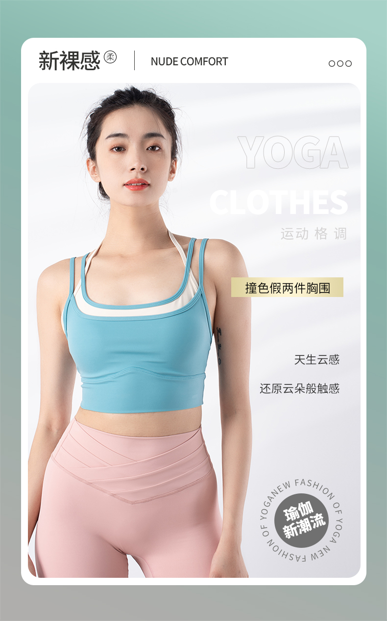 跃牌【禅语梵心系列】新品撞色假两件速干运动一体胸垫瑜伽服胸围F2246(一体式胸垫)