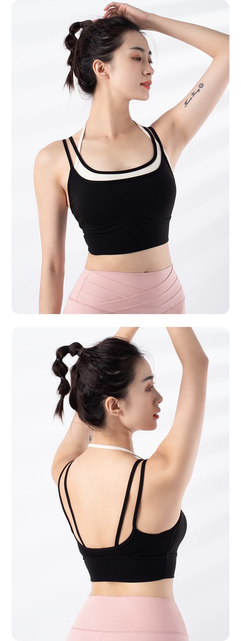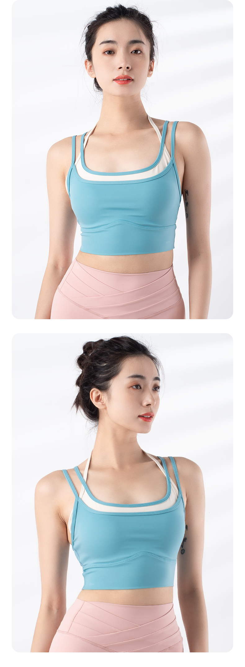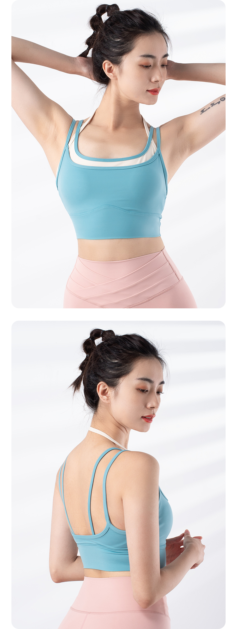 跃牌【禅语梵心系列】新品撞色假两件速干运动一体胸垫瑜伽服胸围F2246(一体式胸垫)