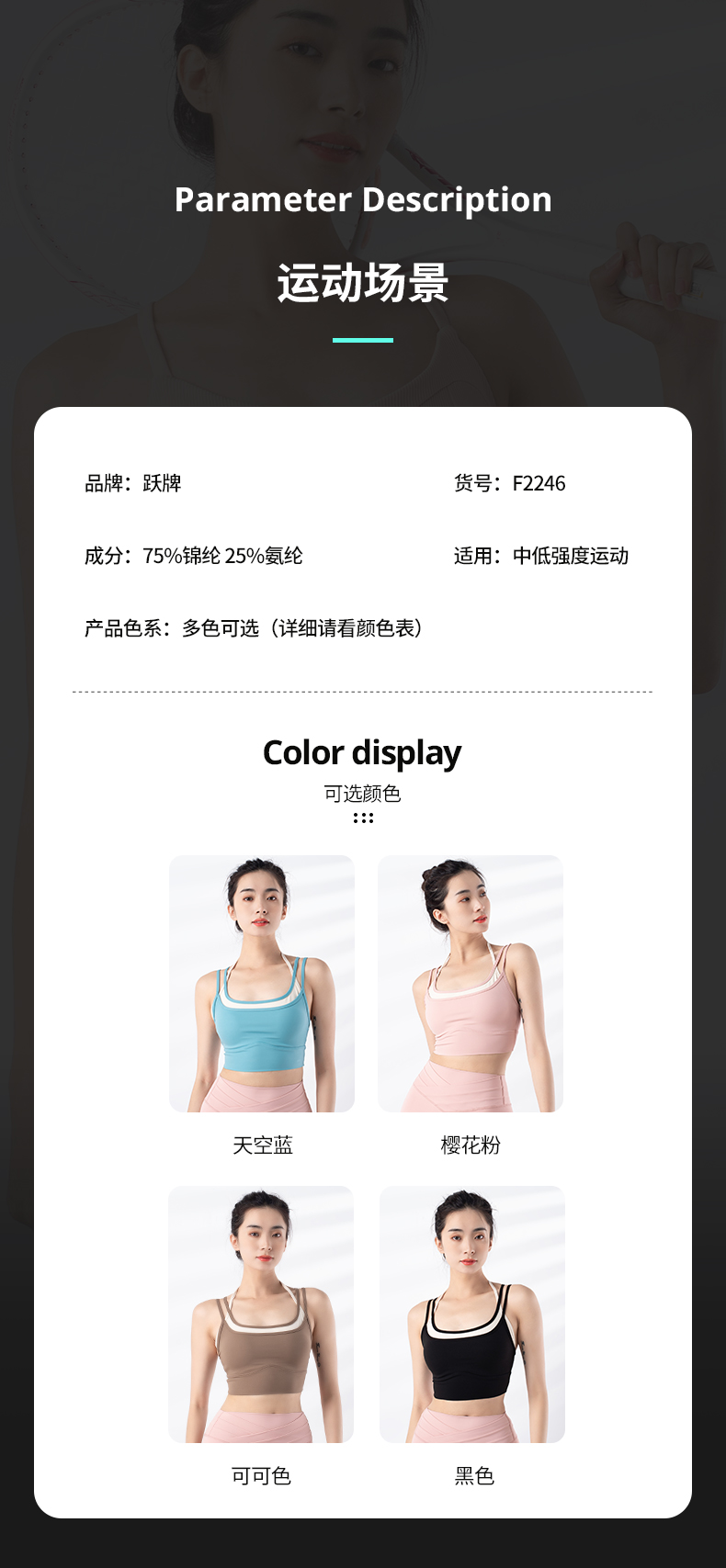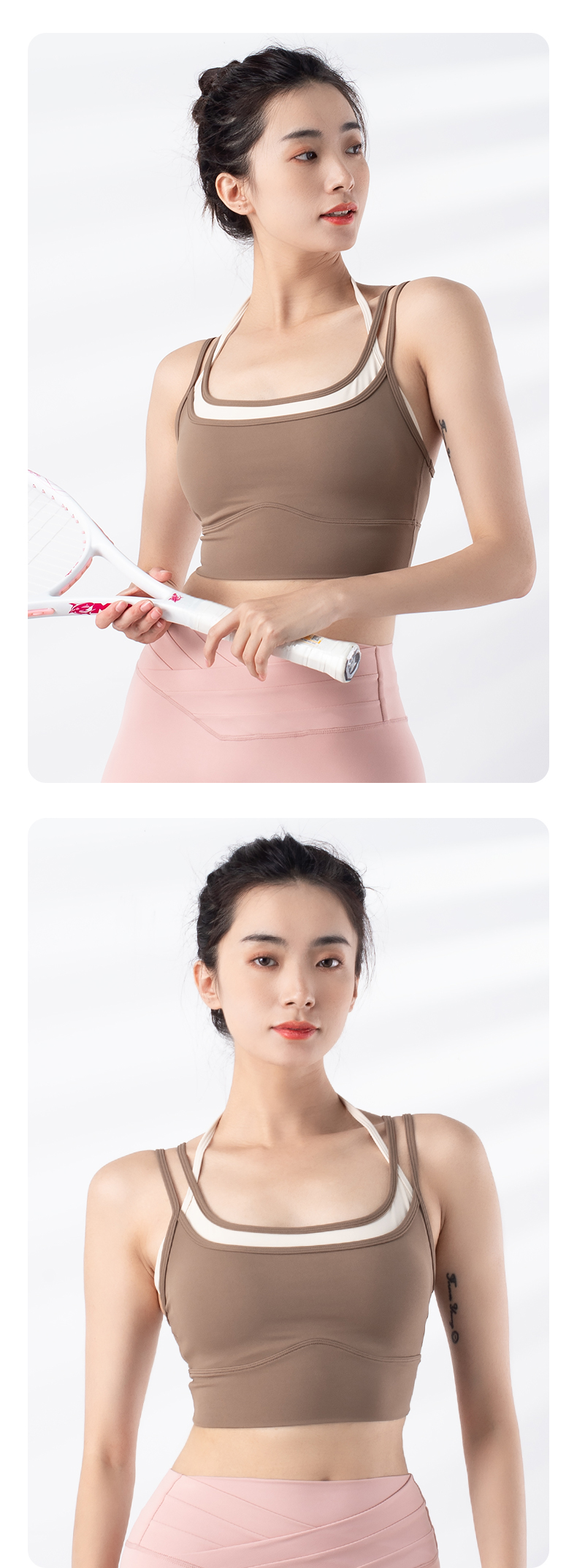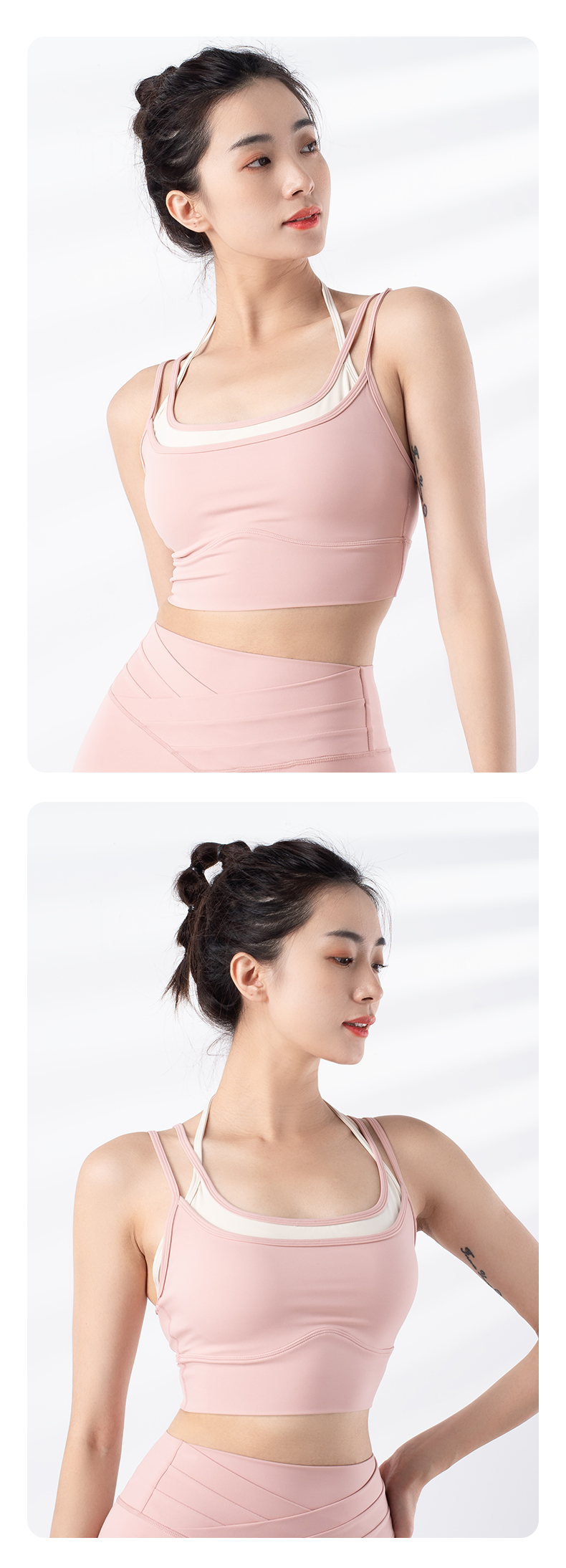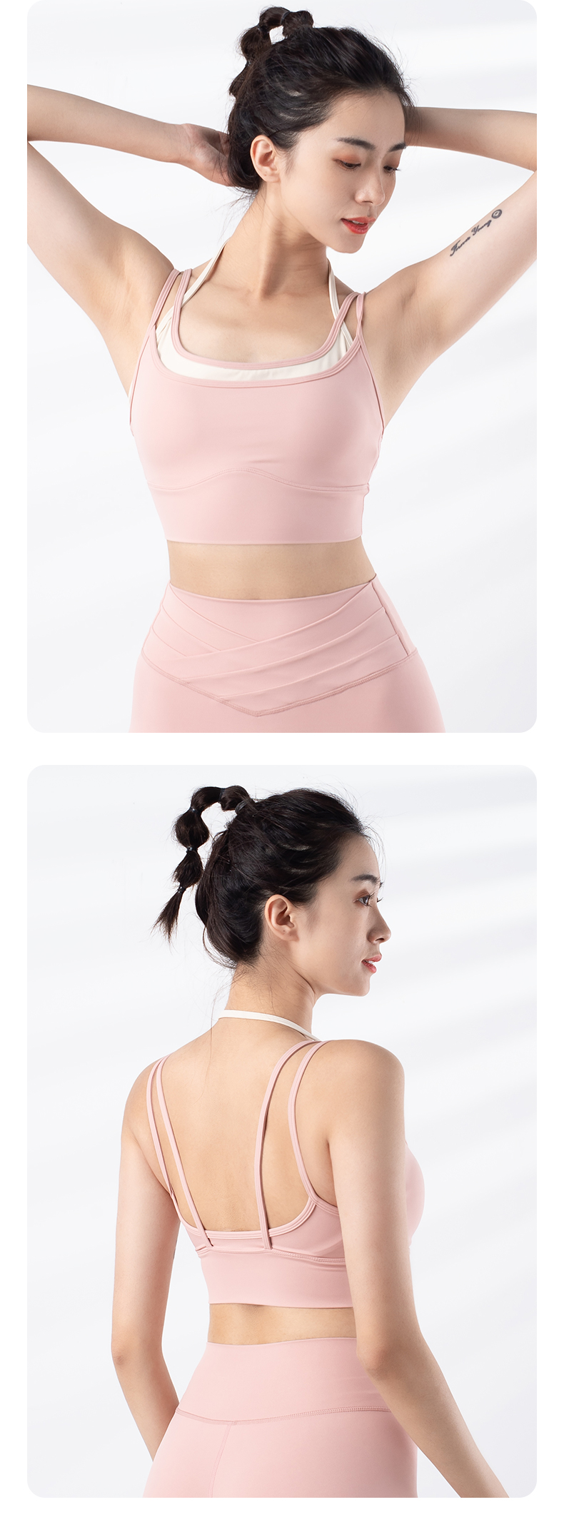 跃牌【禅语梵心系列】新品撞色假两件速干运动一体胸垫瑜伽服胸围F2246(一体式胸垫)