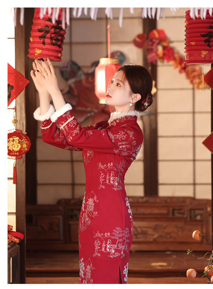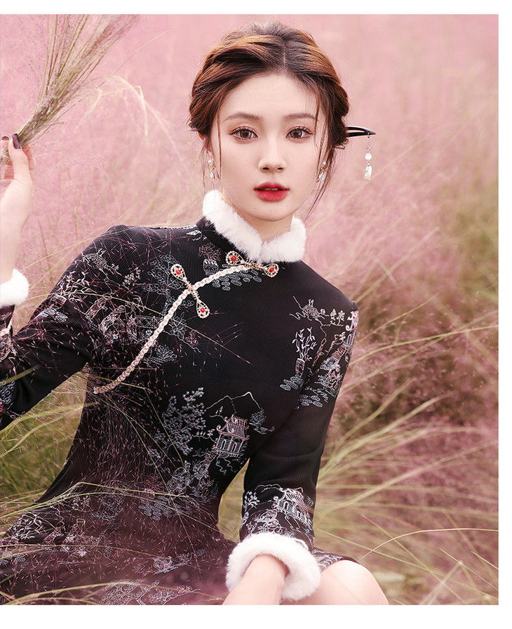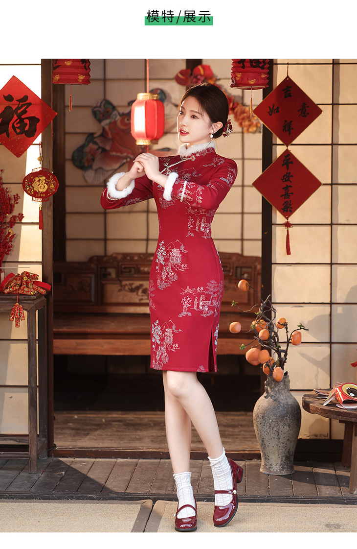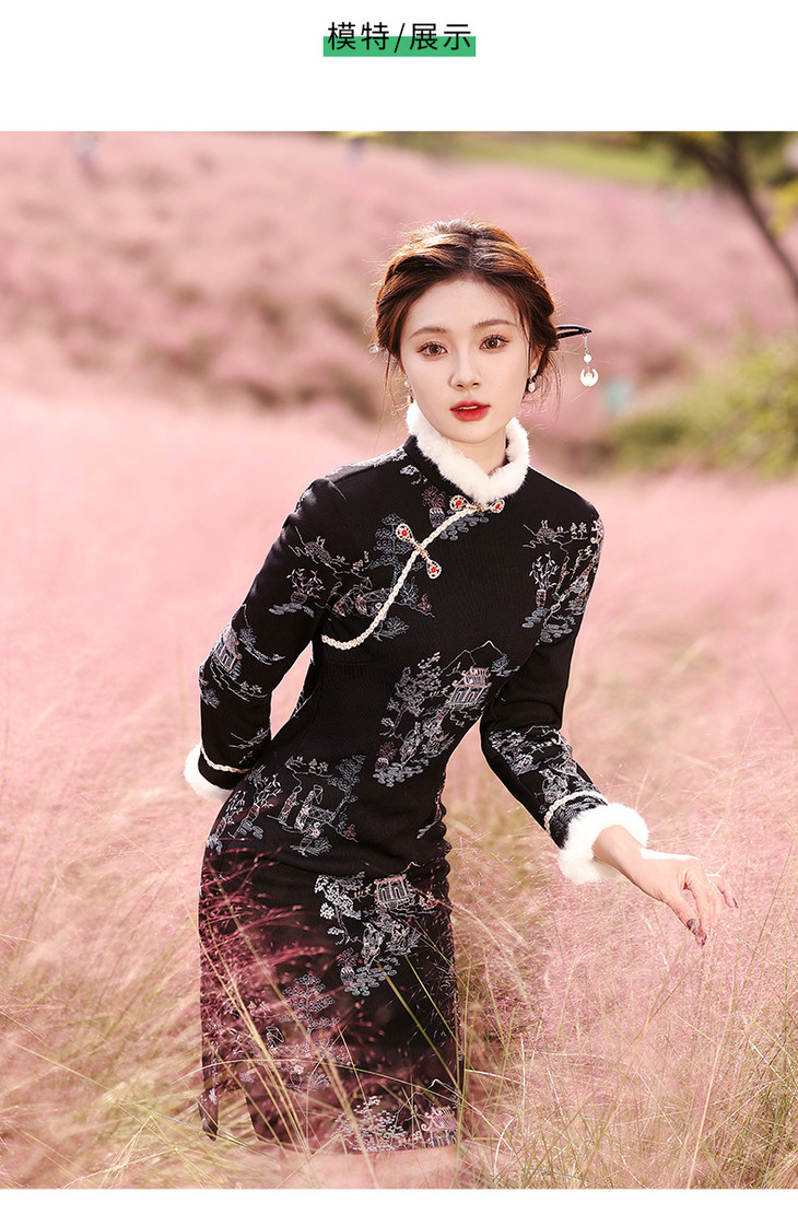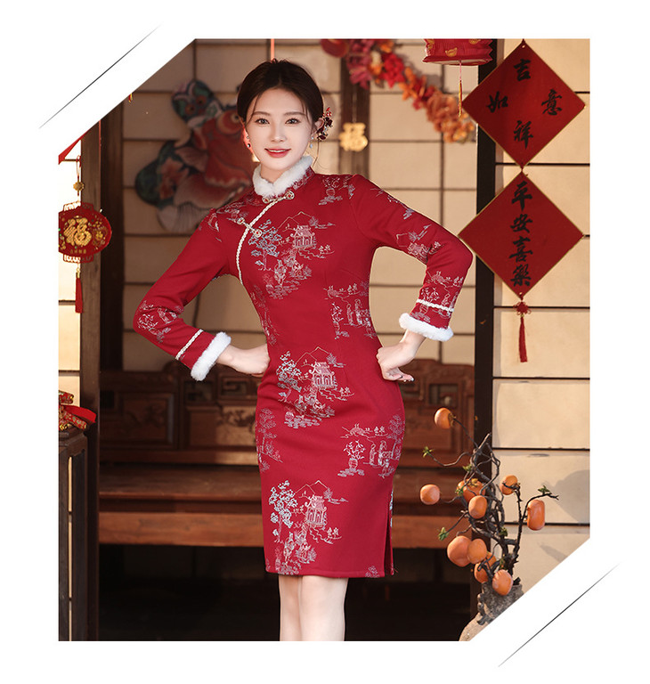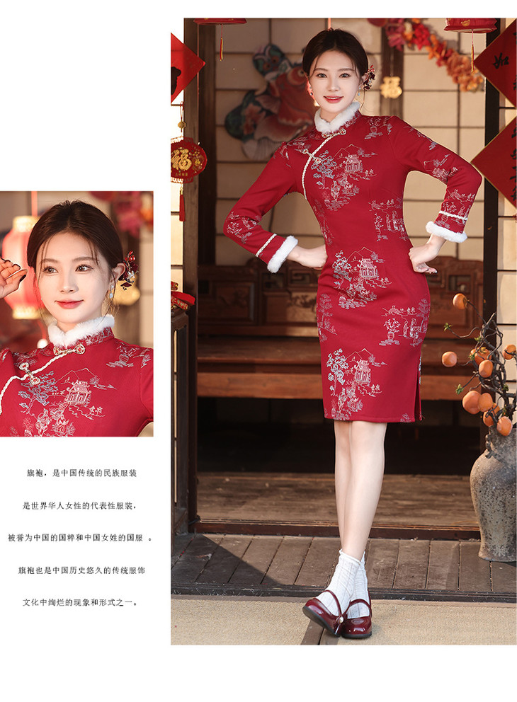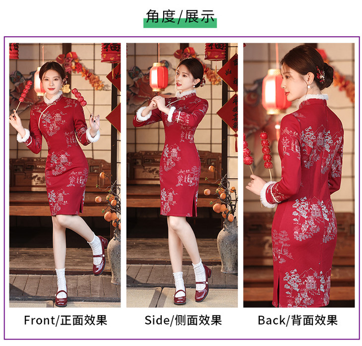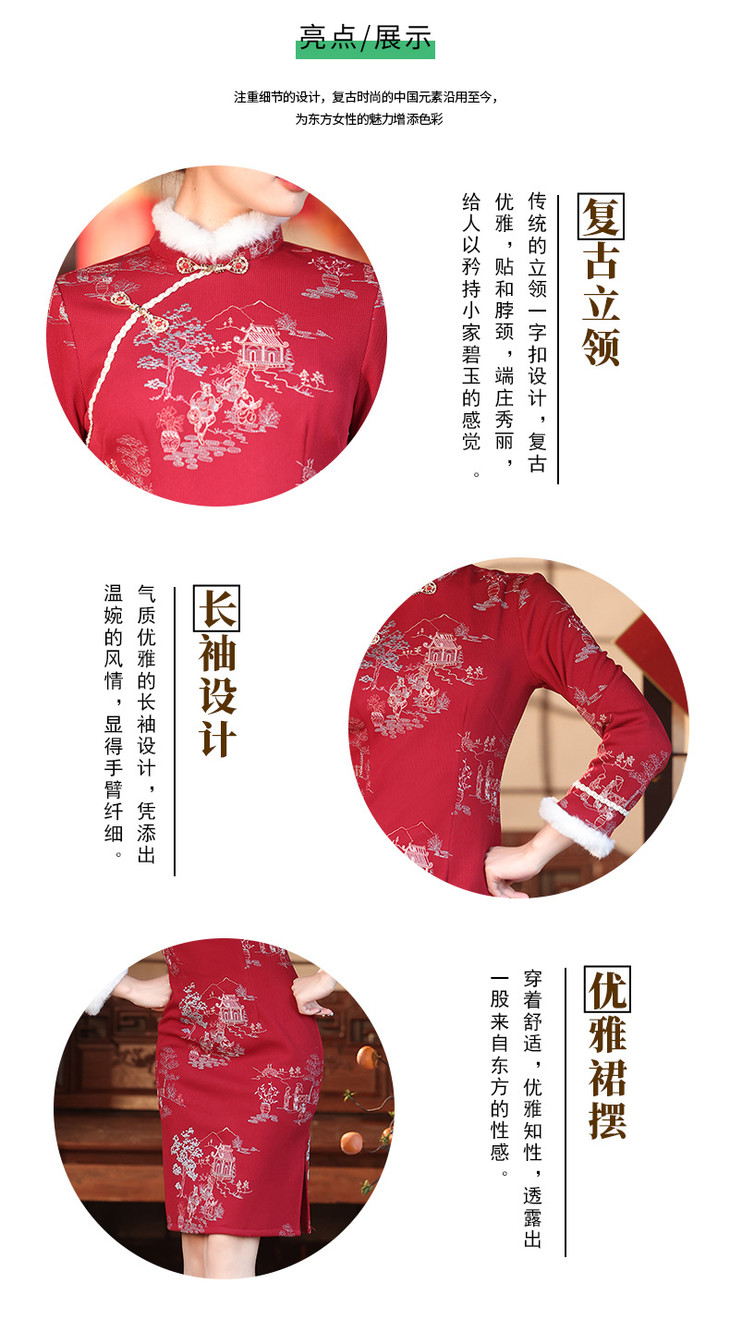 冬款绣花加绒年轻款可爱俏皮显瘦中长款旗袍连衣裙MLS6815
