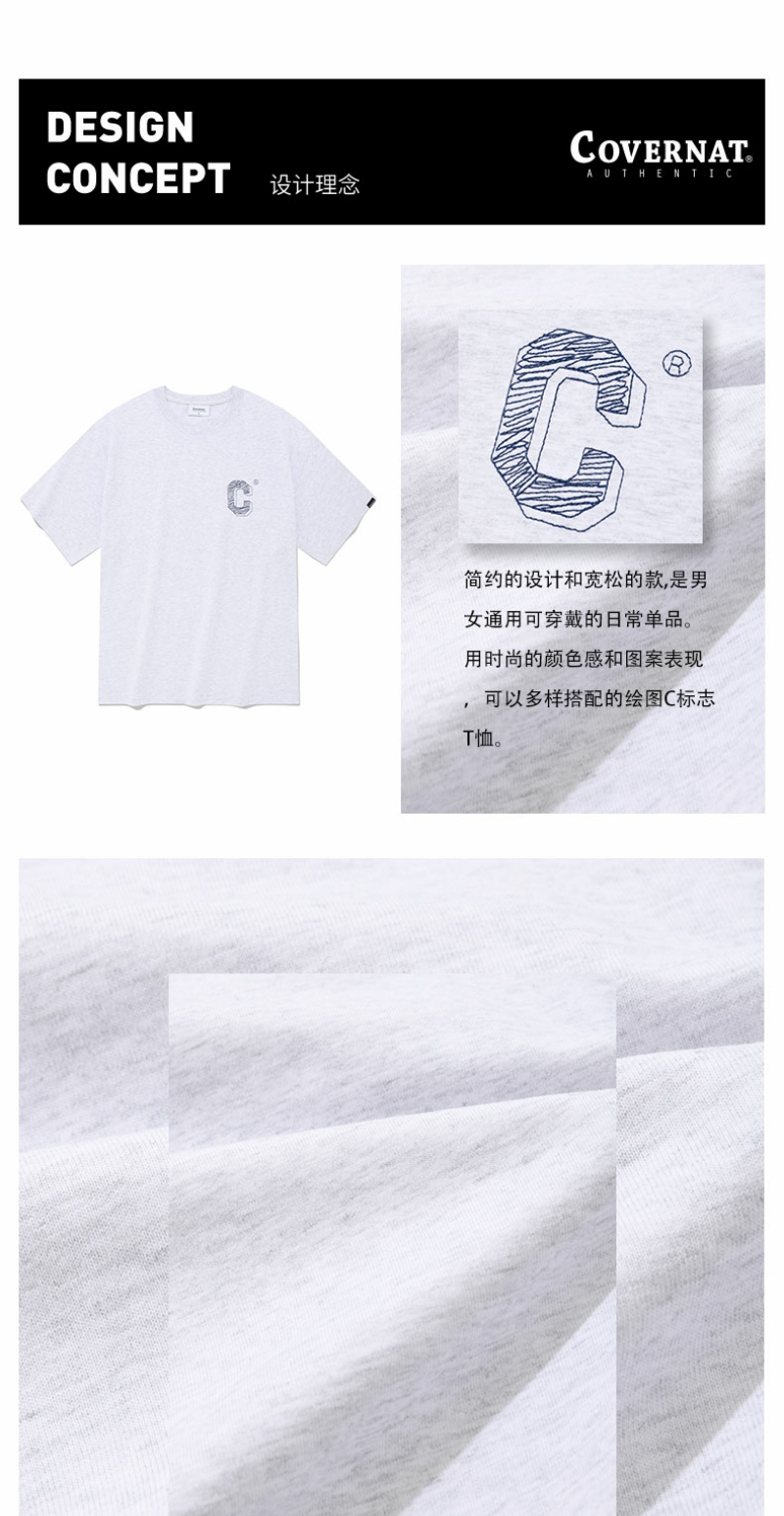 【国庆狂欢】covernat韩国潮牌短袖T恤情侣同款男女圆领套头上衣时尚棉质CO2302ST13