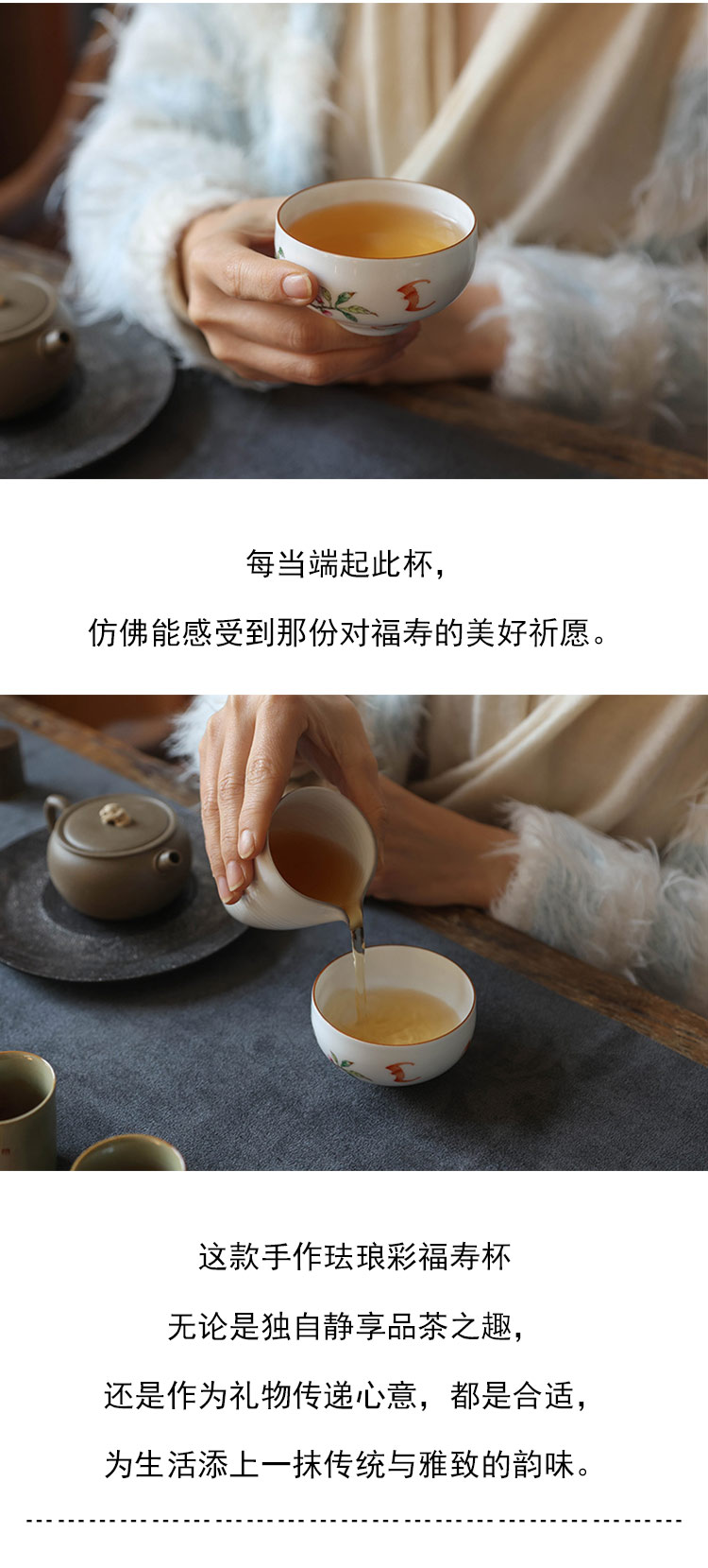 茶香记 景德镇手作珐琅彩福寿杯90ml色彩艳丽吸睛夺目寓意美好茶杯主人杯
