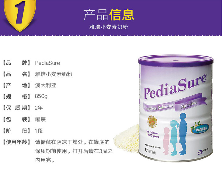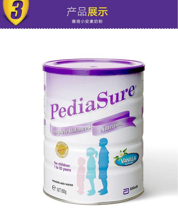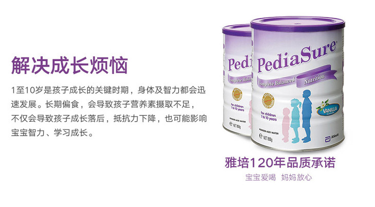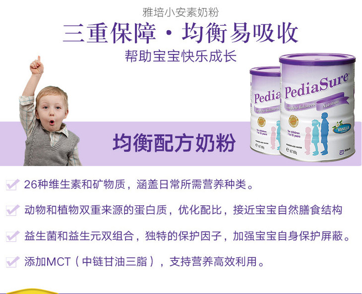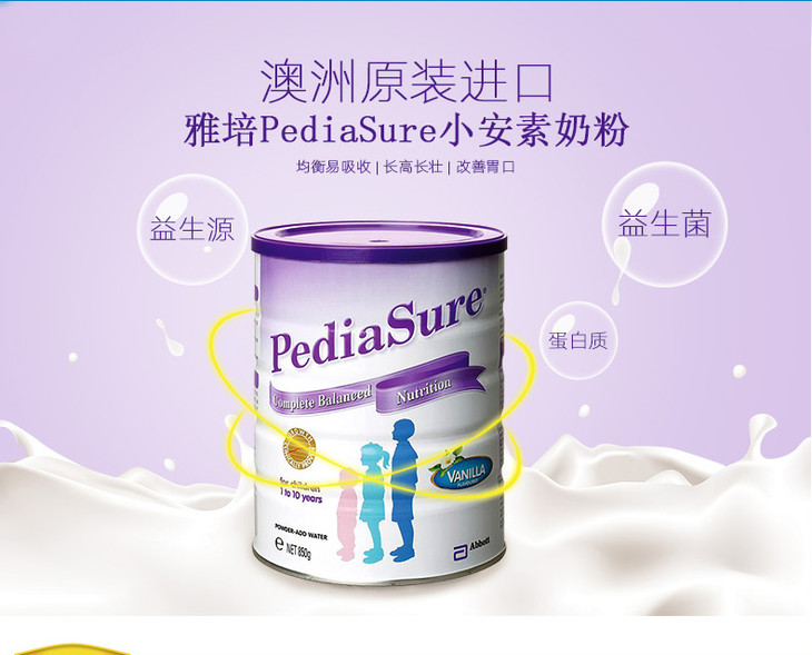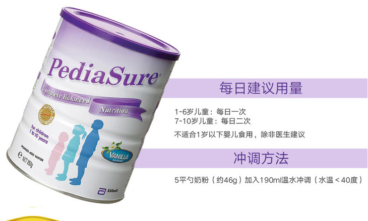 【海外直邮】澳大利亚Abbott雅培小安素pediasure儿童奶粉香草味850g(新老包装随机发)