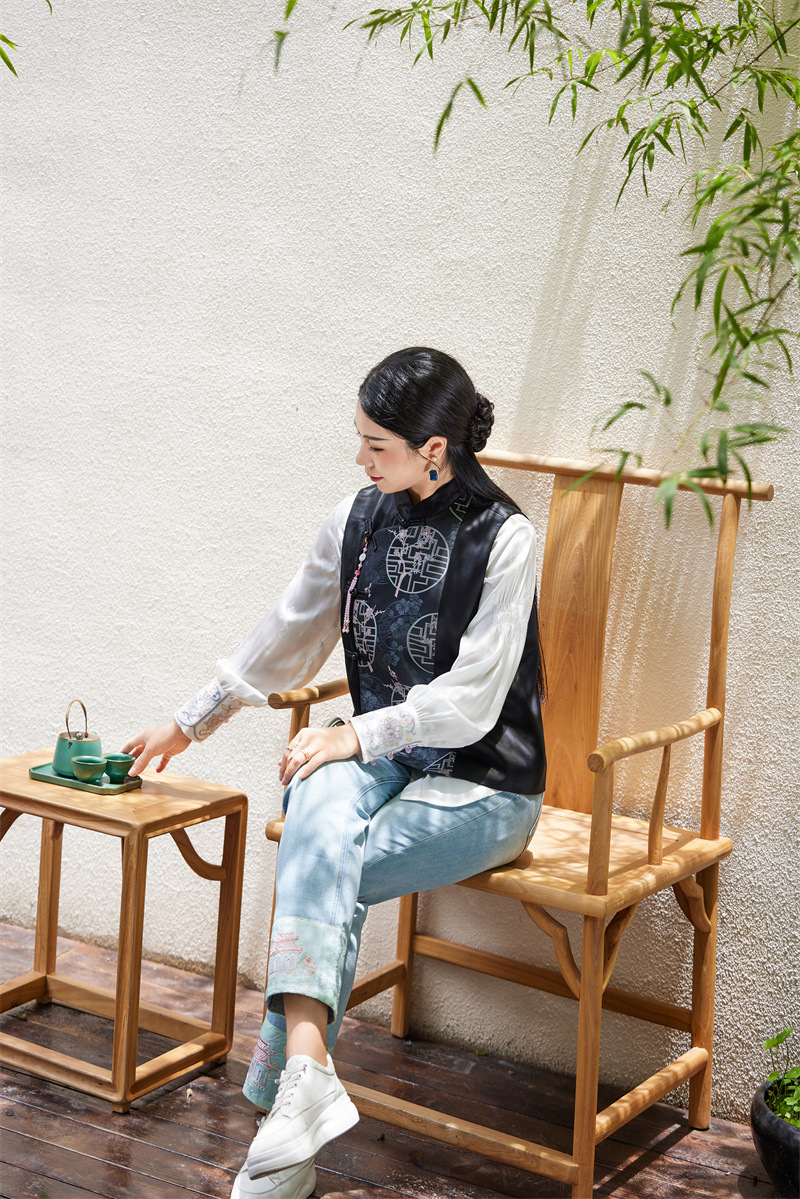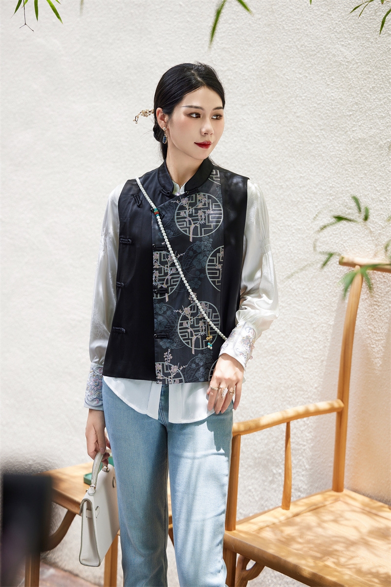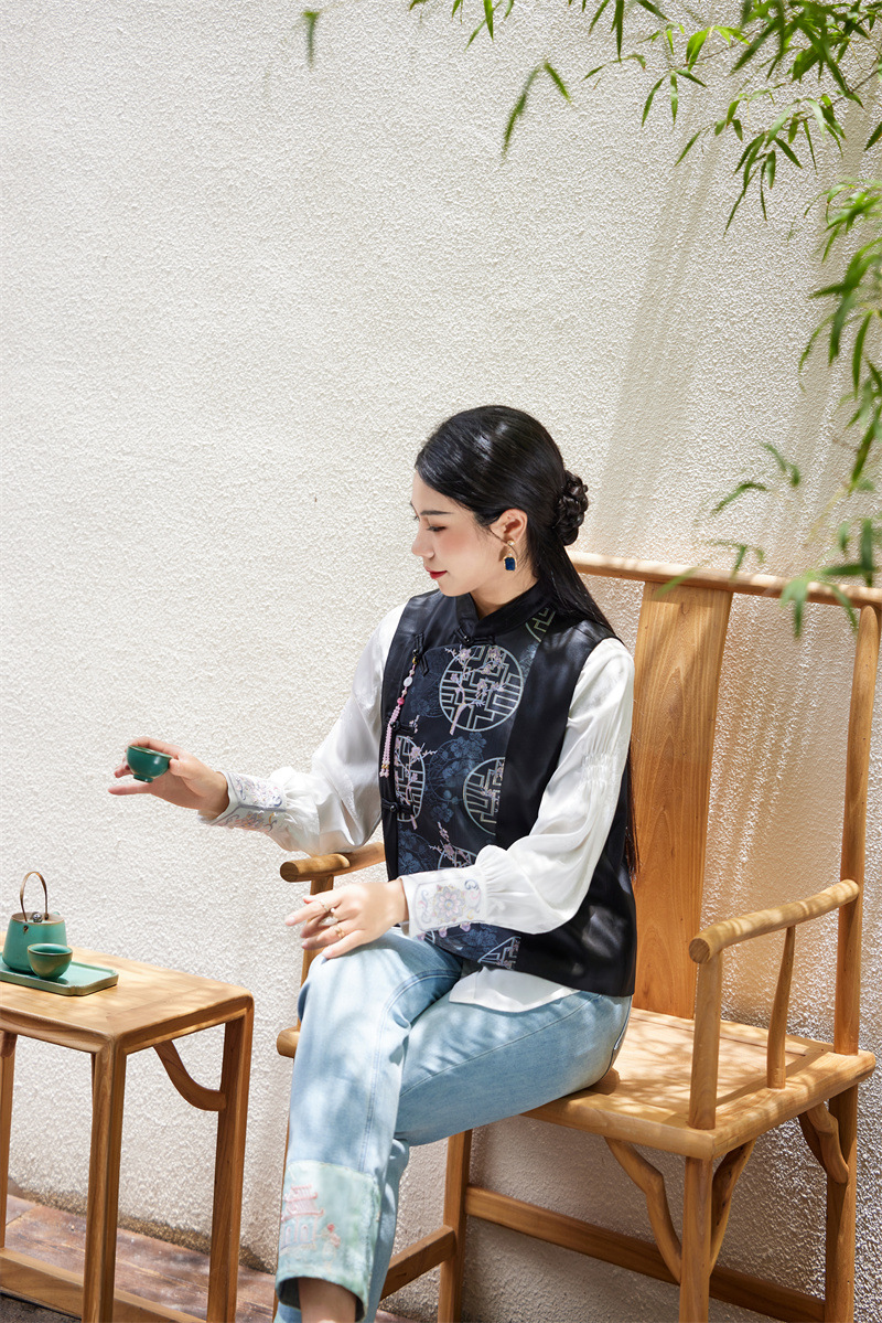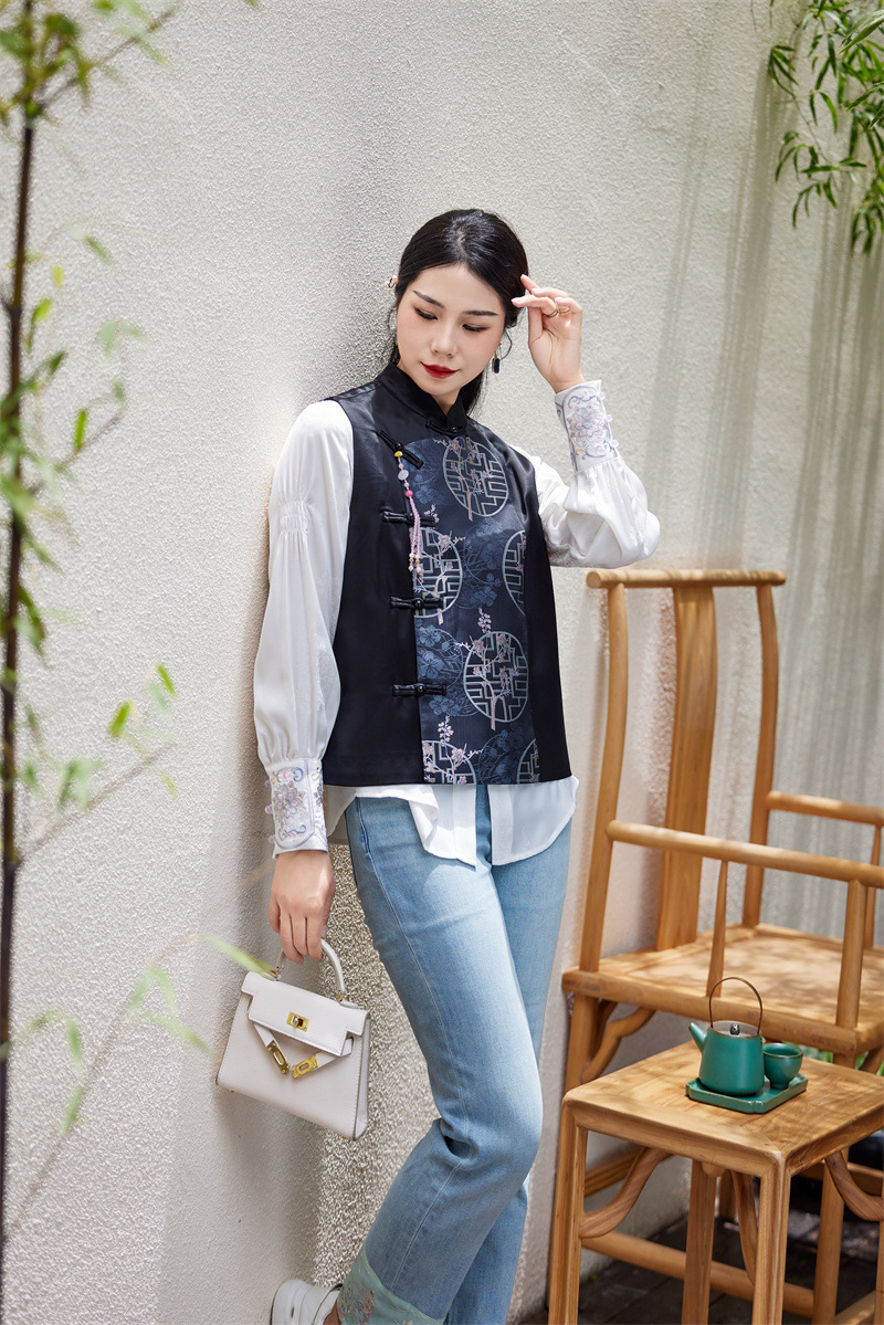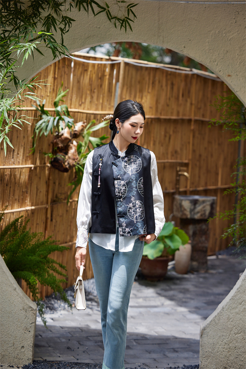 FLZD-A9430秋冬感醋酸重工刺绣马甲新款精品中式国风背心女