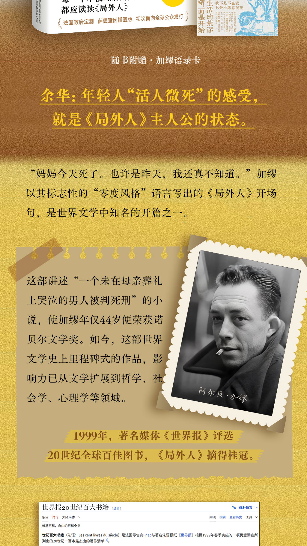 局外人(法国政府定制插图版):诺贝尔文学奖得主加缪代表作!每一个不被理解的灵魂,都应读读局外人