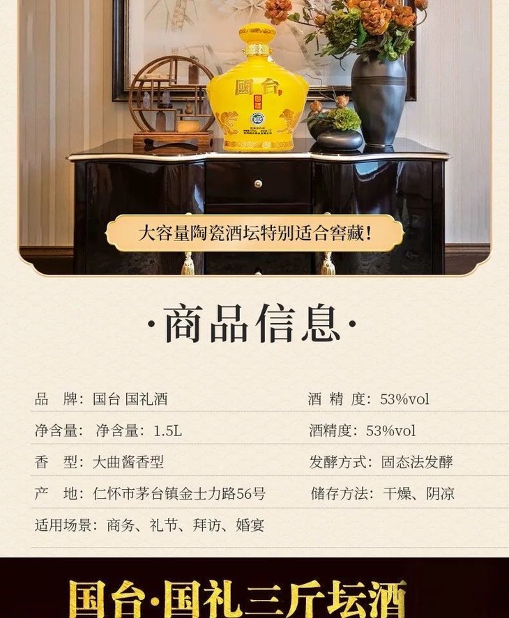 【推荐】贵州国台酒 国礼经典版 1.5L礼盒装 坛子酒1500ml*2 酱香型白酒 53度整箱装白酒