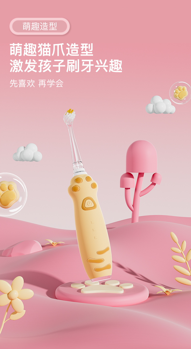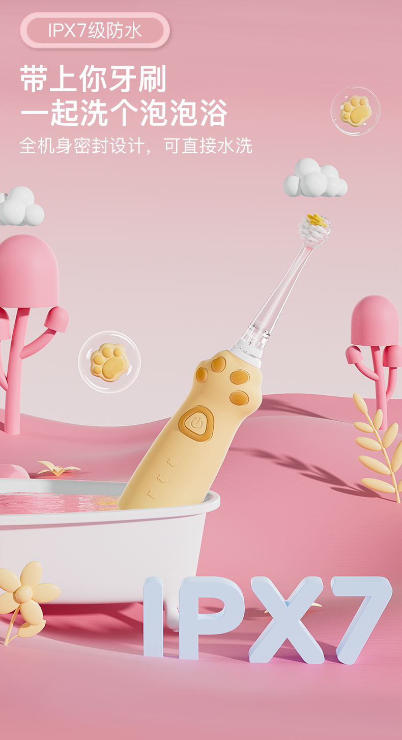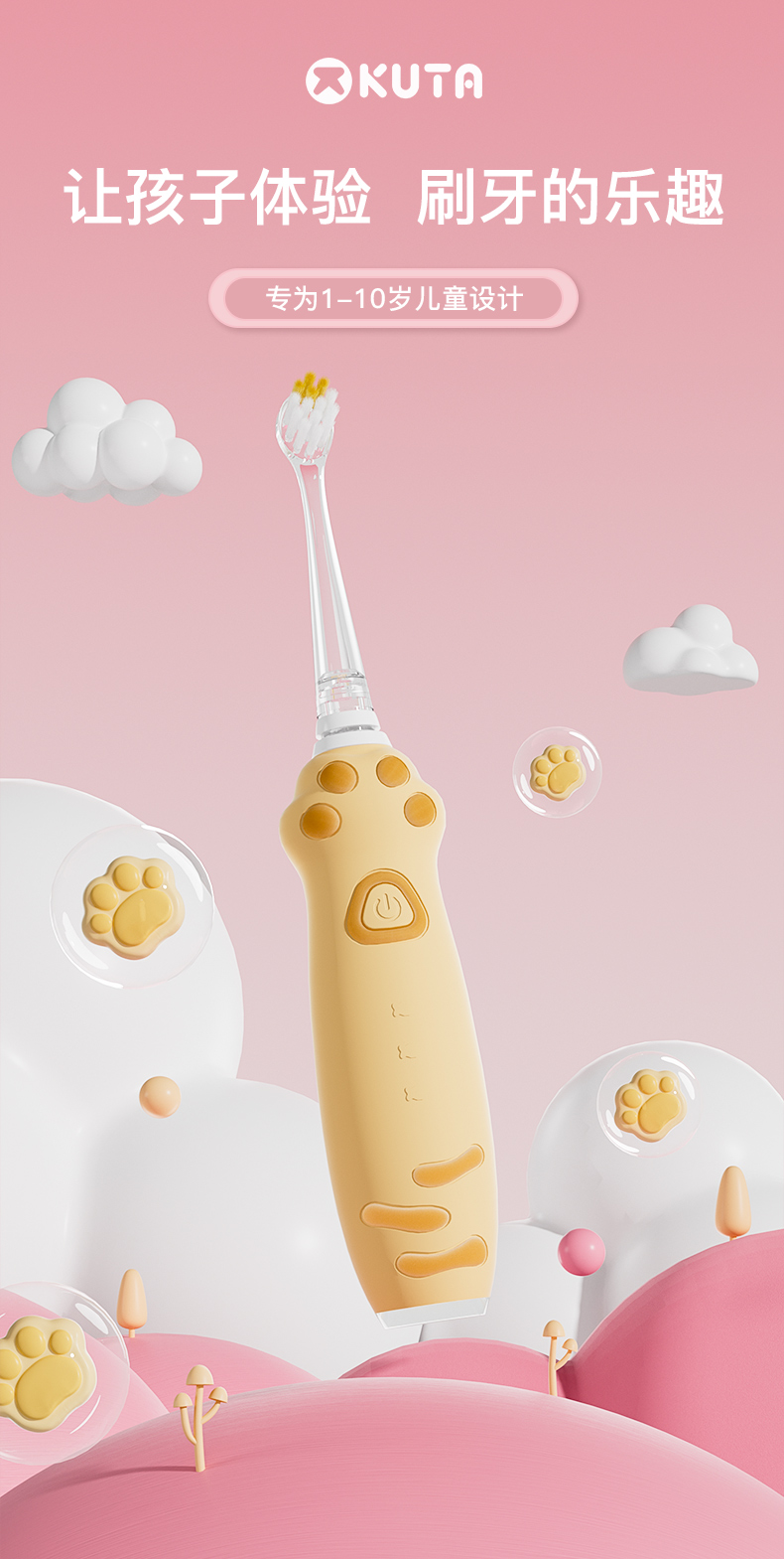 【TOP】KUTA儿童电动牙刷宝宝1-2-3-6-10岁以上小孩软毛声波全自动猫爪造型送壁挂架