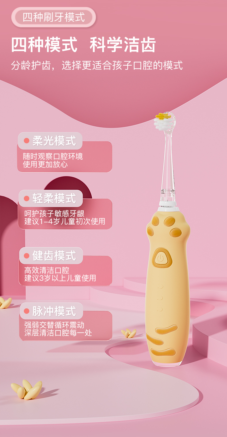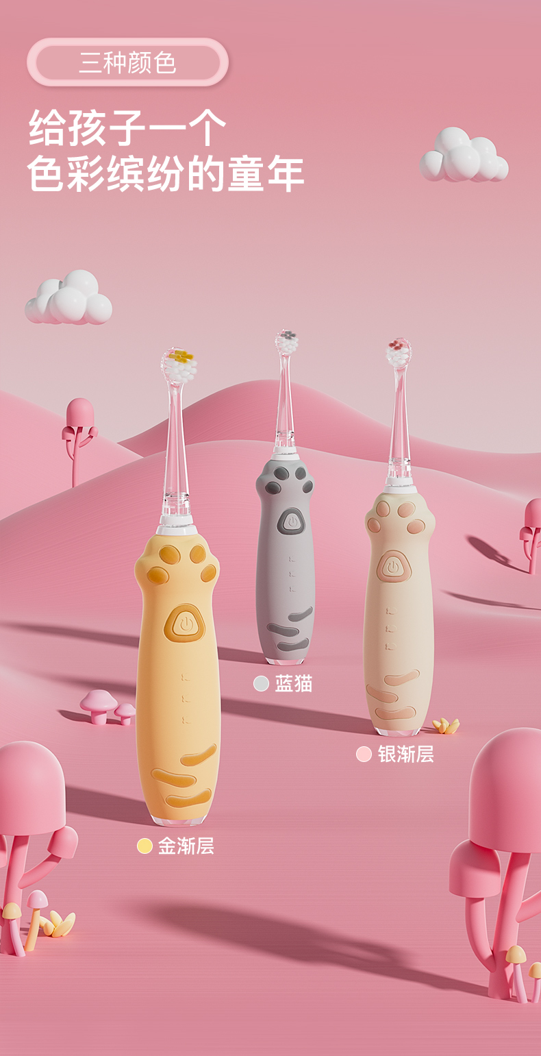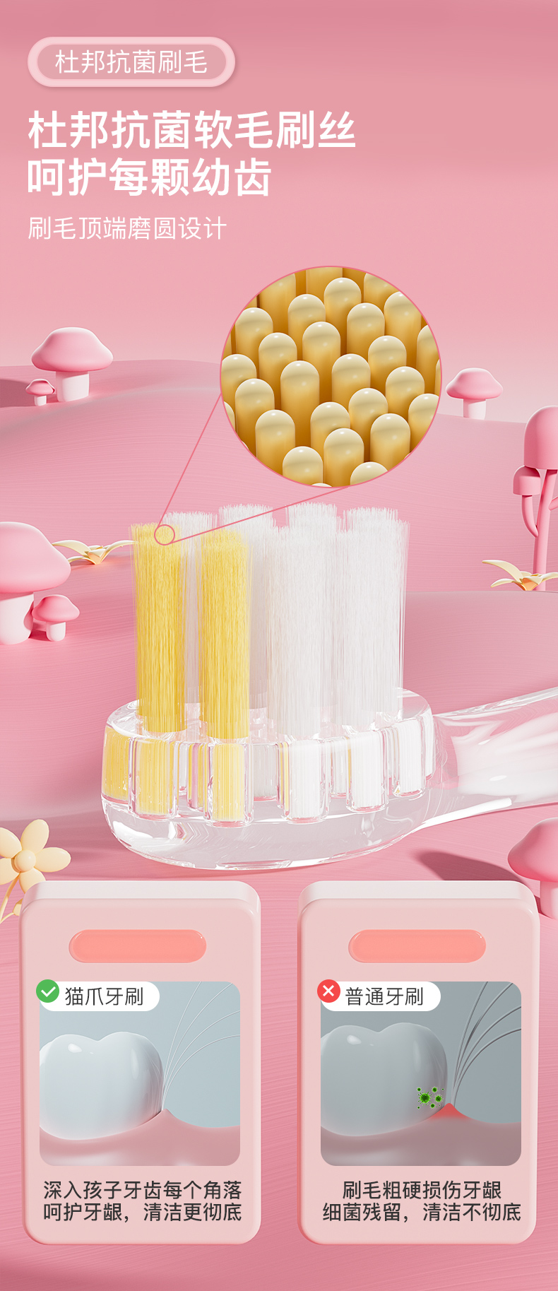 【TOP】KUTA儿童电动牙刷宝宝1-2-3-6-10岁以上小孩软毛声波全自动猫爪造型送壁挂架